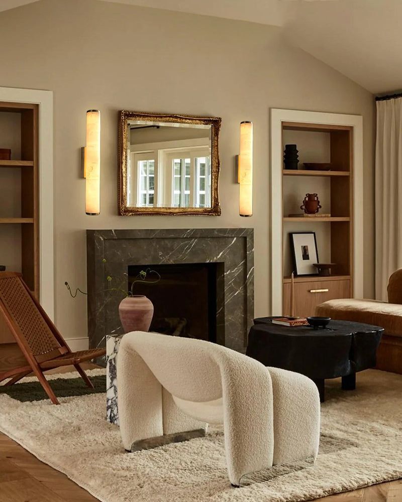 LED Copper Cylindrical Natural Marble Alabaster Wall Sconce Lamp