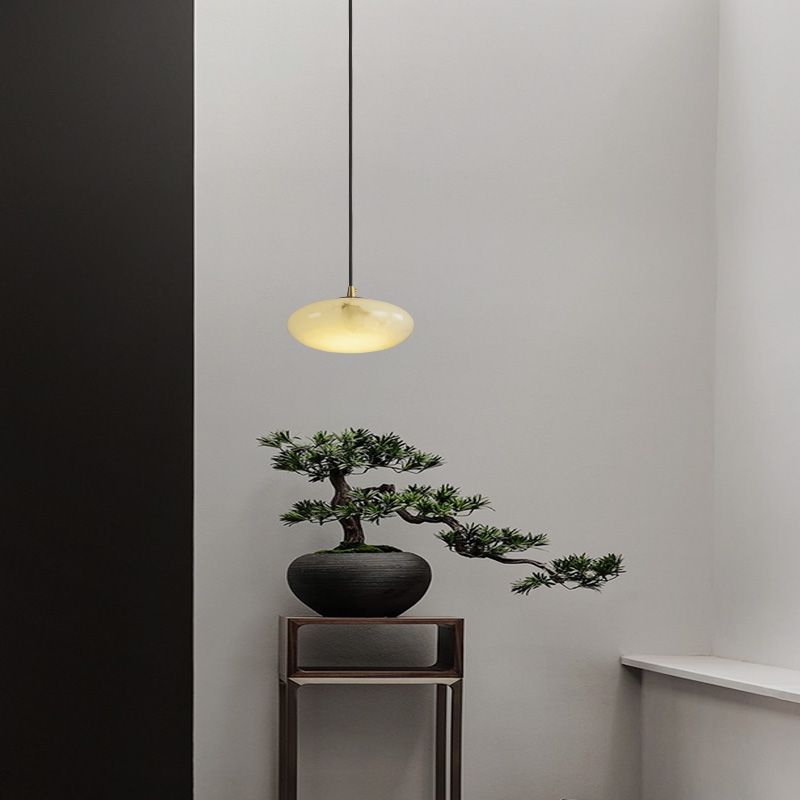 Alabaster Oval Pendant 5.9" D 7.1" D