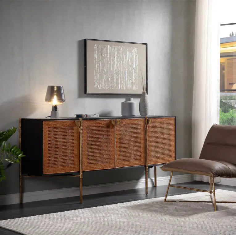 Thaddeus Metal Frame Rattan Long Side Cabinet