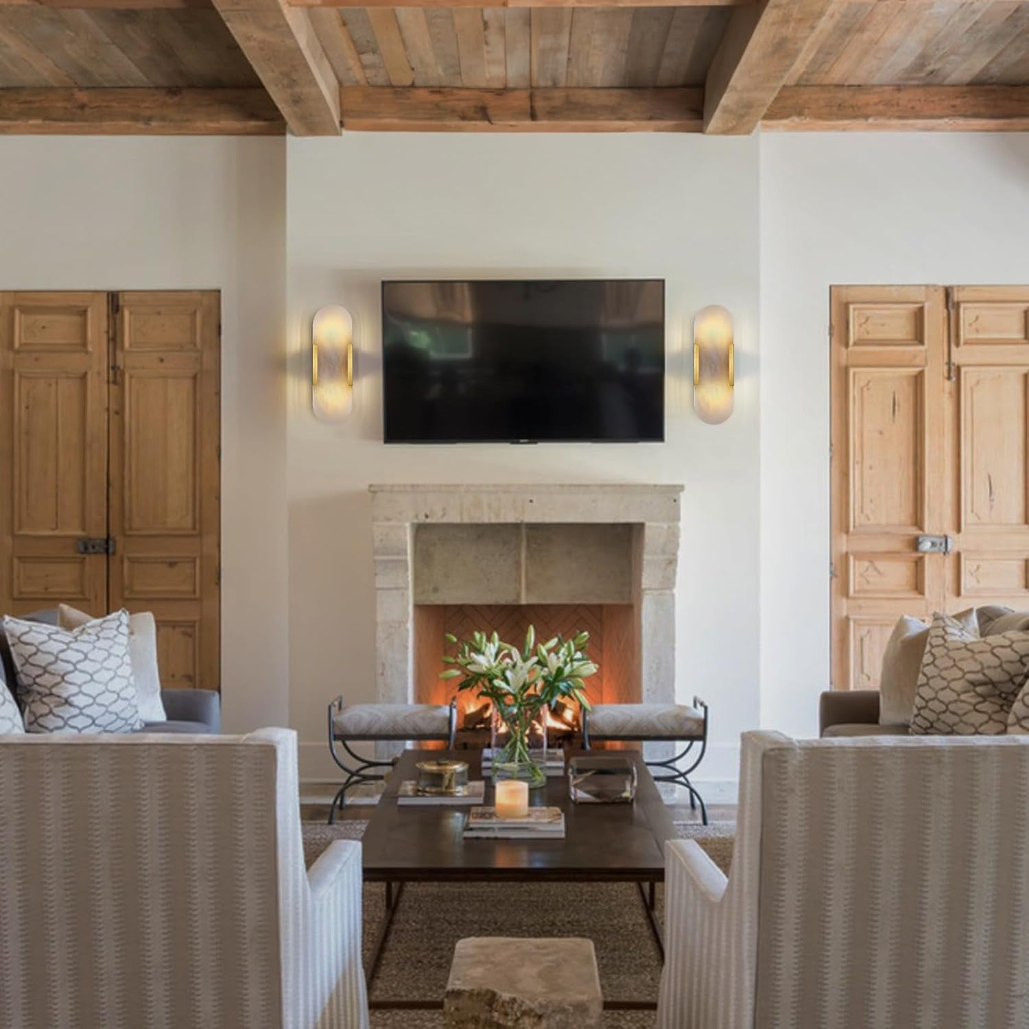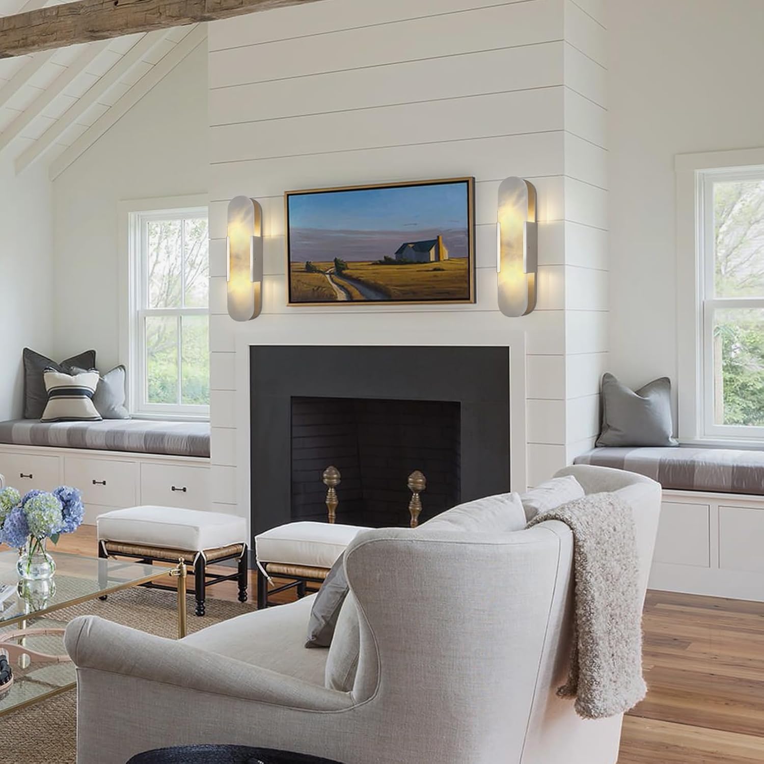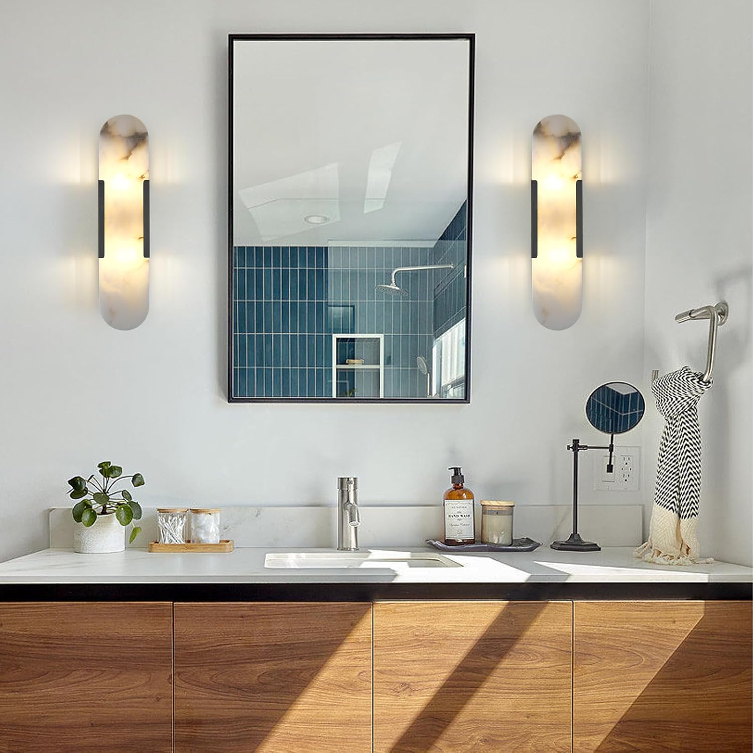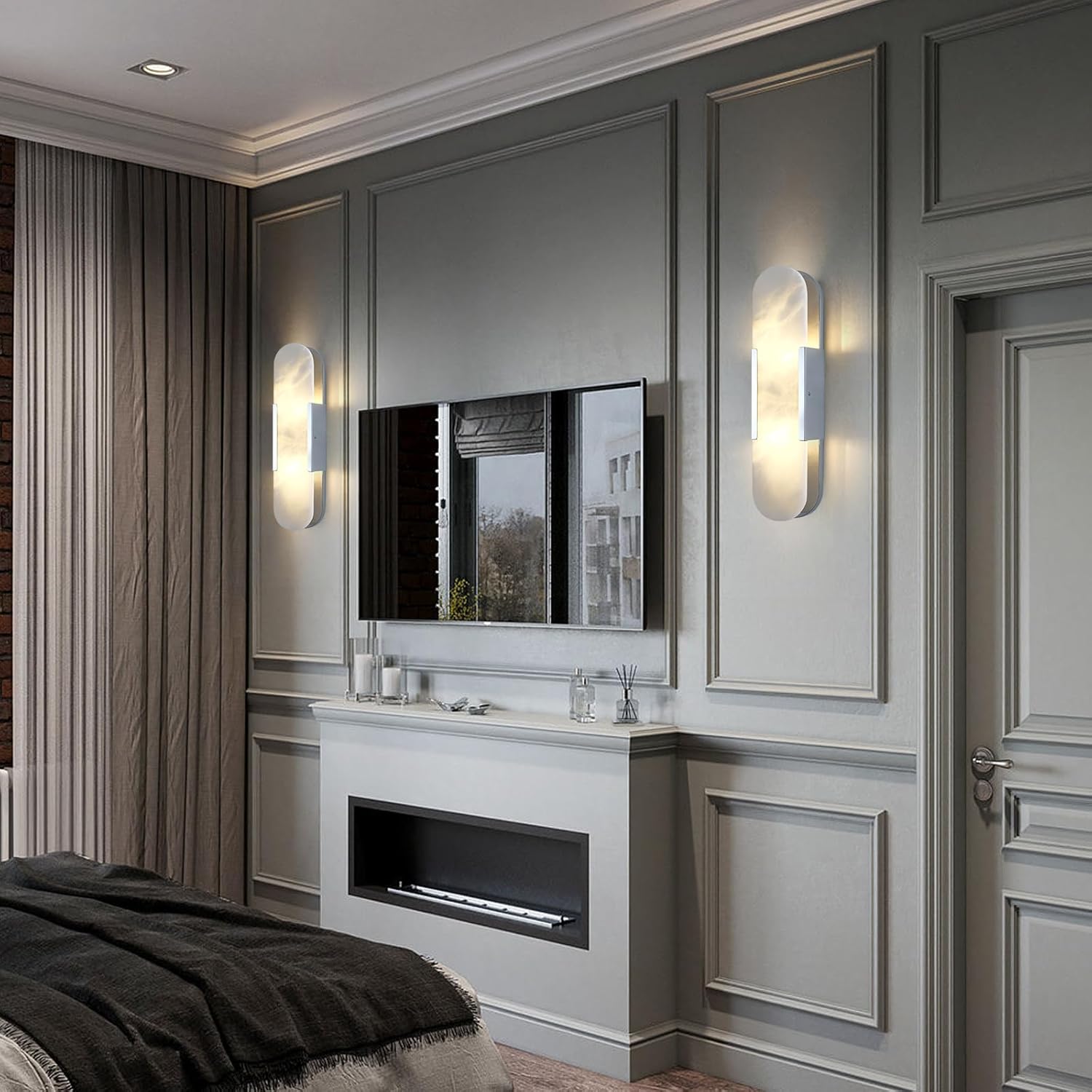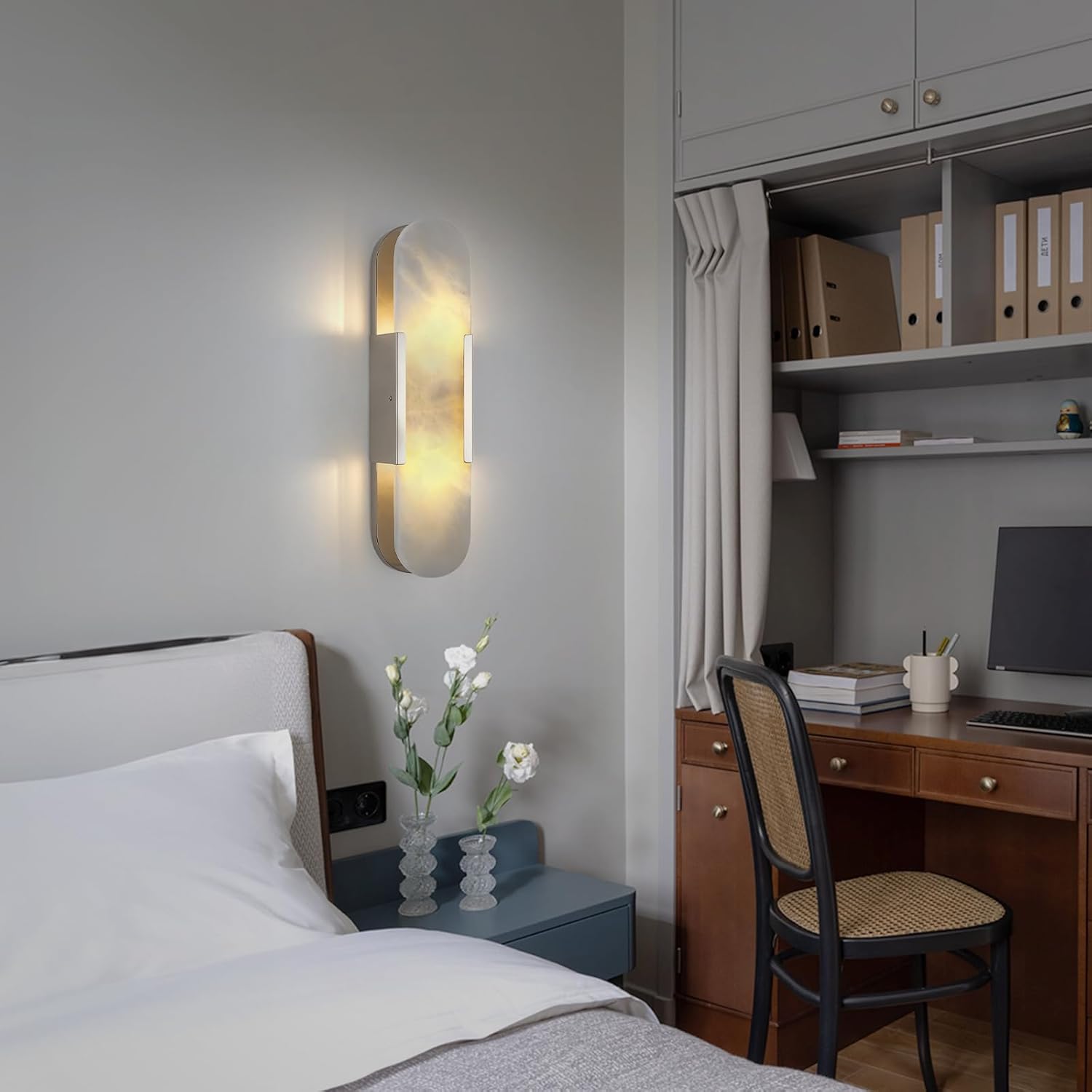 Elegant alabaster sconce is handcrafted of metal & natural alabaster imported from Spain, all with one-of-a-kind patterns, which are formed by geological processes. Delicately selected, carved & polished, the sconces wall lighting show off the inherent beauty of rare natural stones, add a sophisticated touch to your any space.