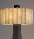 The Pantheon Floor Lamp pays homage to the bold geometric designs of the 1970s, blending vintage inspiration with contemporary elegance. Its sleek black metal base supports a striking pleated white lampshade, available in two high-quality options: a luxurious marble alabaster version and a durable PVC alternative.