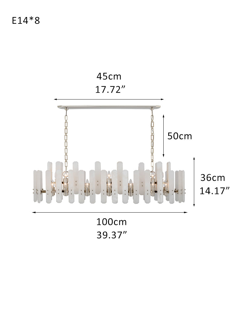 The material of alabaster is marble and copper. Elevate your space with this elegantly crafted chandelier, blending minimalist modern design with timeless sophistication. Perfect for living rooms, dining areas, or entryways, it harmonizes functionality and artistry.