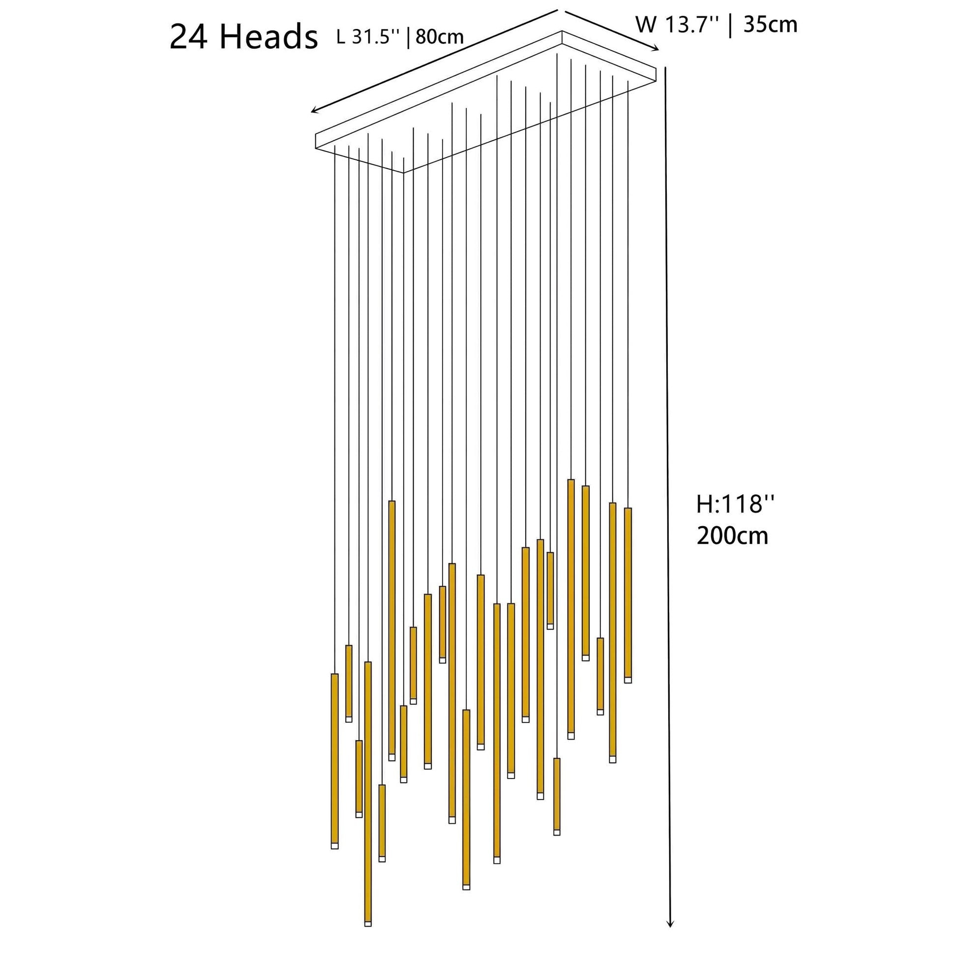 - 24 Head: 31.5" / 80cm Tube*7, 19.6" / 50cm Tube*8, 11.8" / 30cm Tube*9