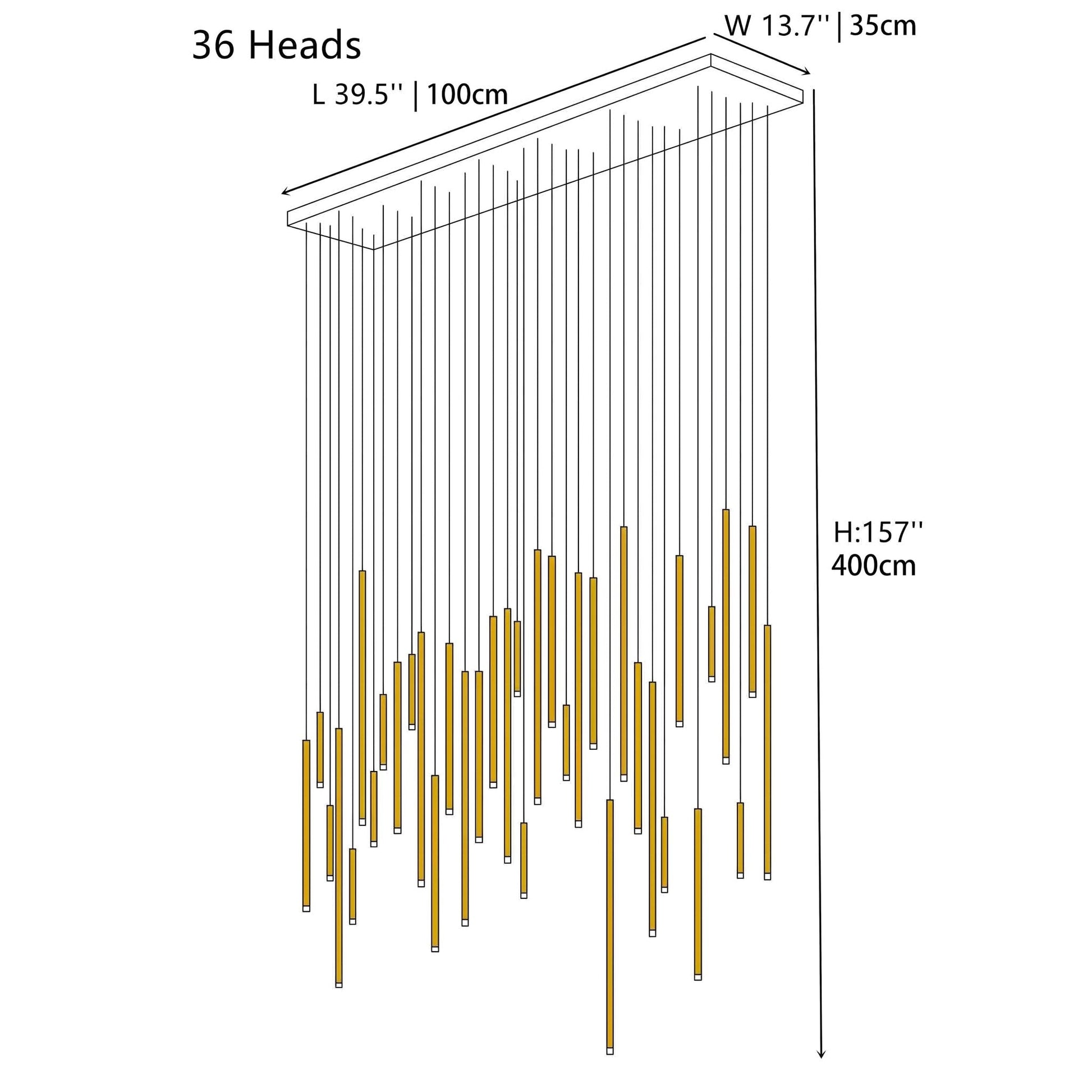 - 36 Head: 31.5" / 80cm Tube*12, 19.6" / 50cm Tube*12, 11.8" / 30cm Tube*12