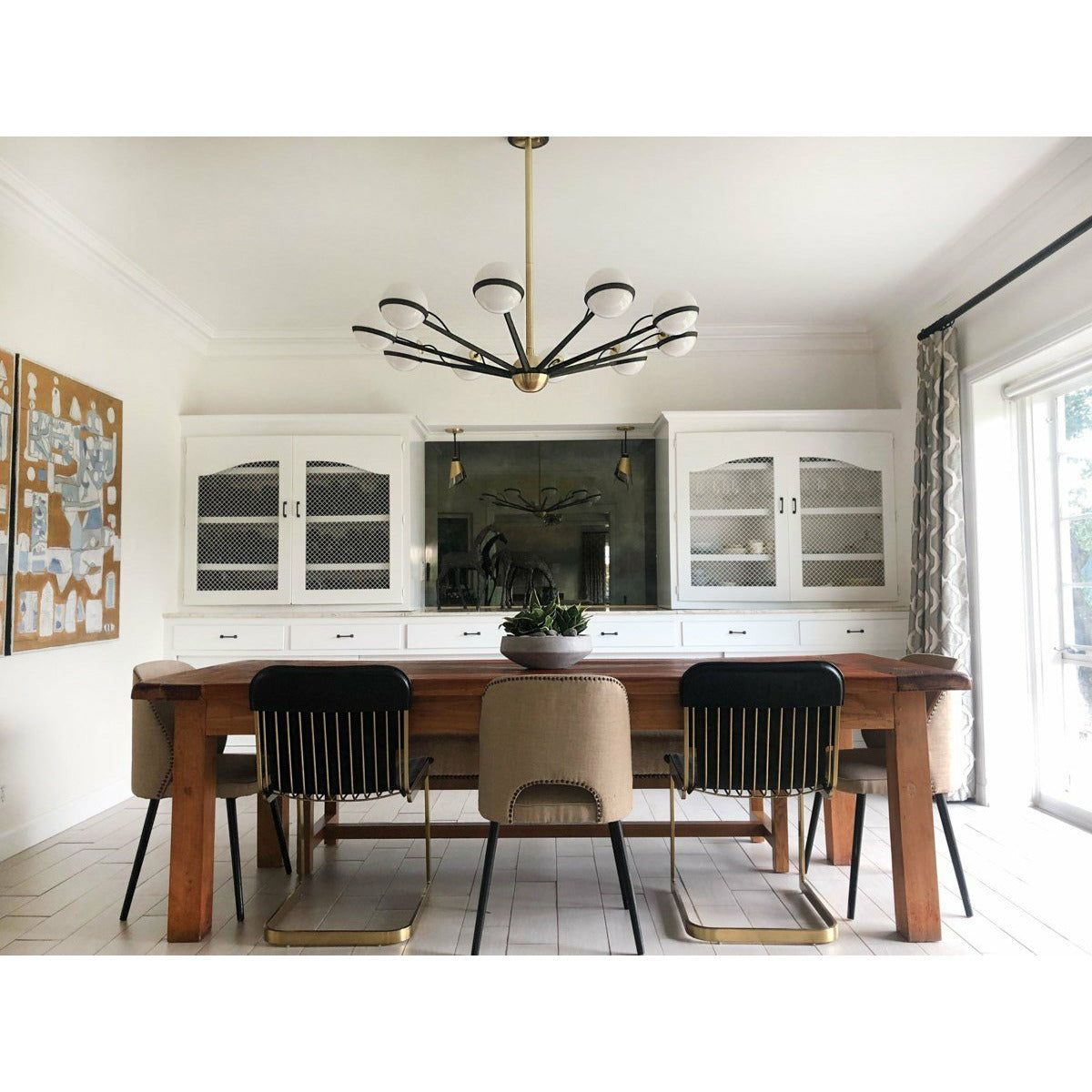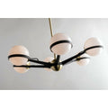 A new spin on atomic age allure, Ace’s strong elements are accented by diagonal and off-center lines. Glossy orb diffusers evenly distribute the light. One of the cool details that makes it such a standout piece are the small woven cords running from the arms to the back of the diffusers, where a curved piece of Brushed Brass or Polished Nickel matches the sphere and rod at Ace’s core.
