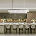 Our Adam Lighting Collection is adorned with natural selenite crystals that hang underneath an iron frame, reflecting the light with elegance. Our artisan hand brushed antique silver finish creates a glamorous aesthetic.