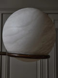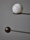 Introduce an artful dynamic to your space with our Alabaster Double Pendulum Chandelier. This stunning piece features a gracefully arched structure in a warm light bronze brass finish, from which two solid alabaster globes are suspended. The counterbalanced pendulums allow you to manually adjust the height of each light, creating a custom, sculptural look. The milky alabaster provides a soft, diffused glow, perfect for creating an ambient and sophisticated atmosphere in any room.
