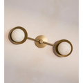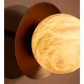 A striking double alabaster wall sconce with an aged brass frame, designed for refined interiors. The hand-carved alabaster globes diffuse a soft, ambient glow, perfect for hallways, living spaces, and boutique hospitality settings. A sculptural lighting statement blending timeless materials with modern elegance.