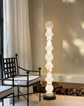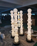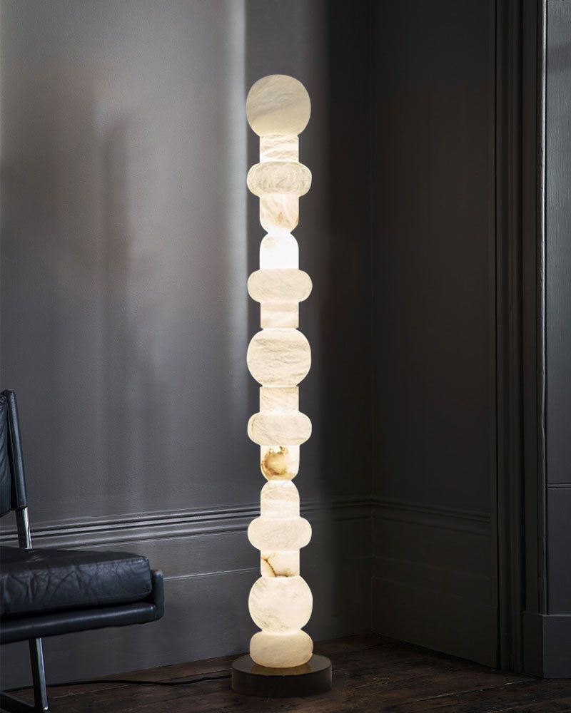 - Stacked alabaster stones echo ancient totems, blending organic texture with modern minimalism.