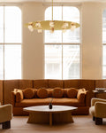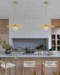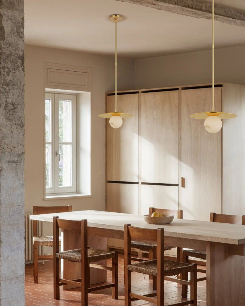 - Modern minimalist design with a sleek, slim brass disc frame.