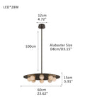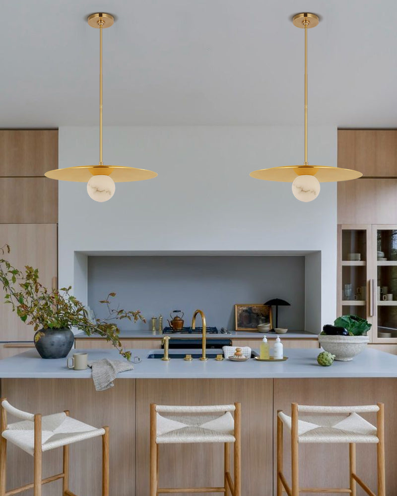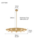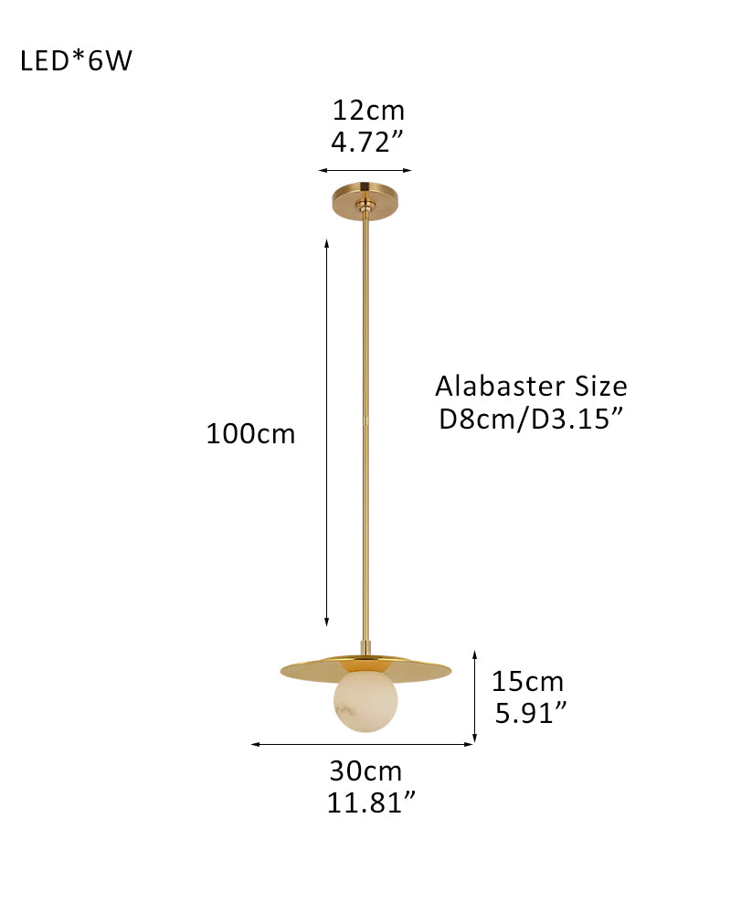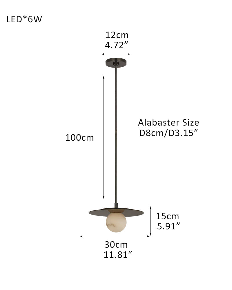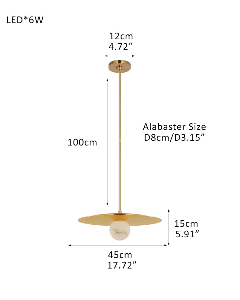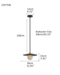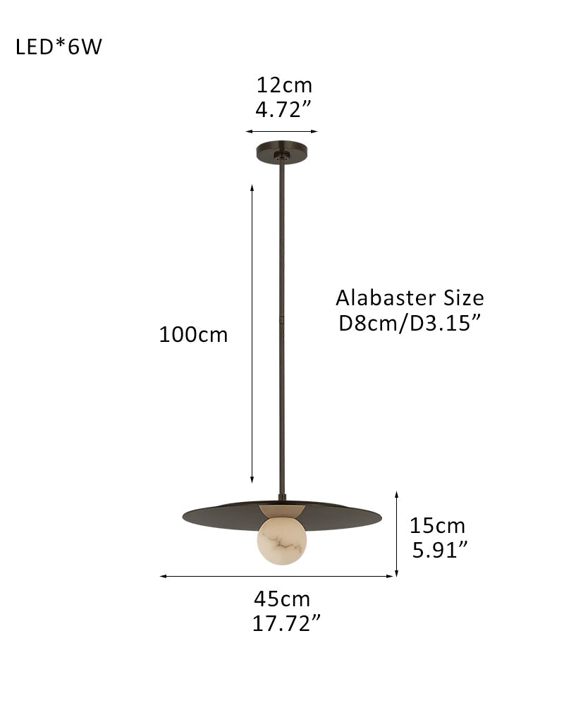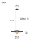 Alabaster Globes LED Disc Pendant Light in Lacquered Brass/Black Stainless Frame