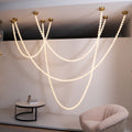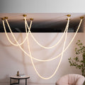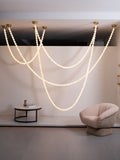 The Alabaster Pearl Necklace Chandelier by Vakkerlight is a breathtaking fusion of sculptural design and refined elegance. Featuring cascading strands of alabaster-like beads, this chandelier mimics the flowing beauty of a pearl necklace draped effortlessly across the ceiling. Each glowing orb casts a warm, diffused light, creating a soft, ambient atmosphere while making a striking visual statement. Anchored by minimalist brass mounts, the flexible arrangement allows for artistic customization in layout and shape. Ideal for luxurious living rooms, grand foyers, or curated retail spaces, this piece embodies Vakkerlight’s dedication to poetic form and timeless craftsmanship.