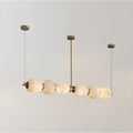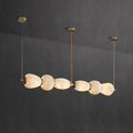 The Alabaster Pebble Linear Chandelier by Oasislive is a stunning blend of organic form and modern design. Featuring a sequence of hand-carved alabaster shades reminiscent of smooth river stones, this chandelier brings a natural elegance to any space. The warm, diffused light glows softly through each uniquely shaped alabaster "pebble," suspended from a minimalist linear frame in a brushed metal finish. Ideal for dining areas, kitchen islands, or statement-making installations, this piece reflects Hermanlamps's mastery in transforming raw materials into sculptural lighting art.