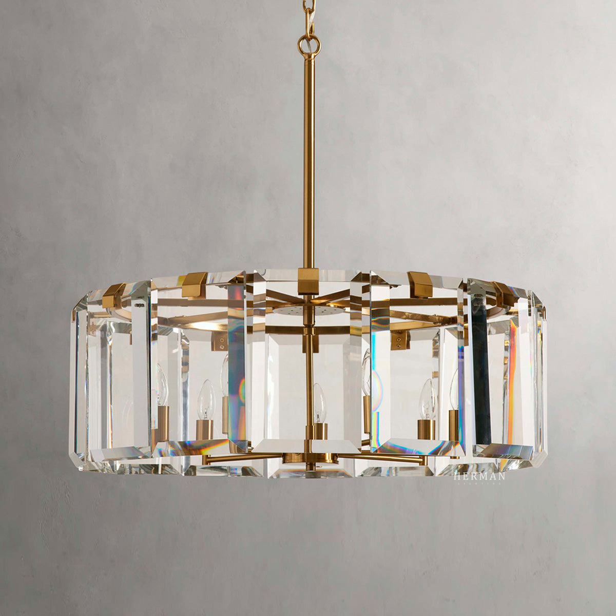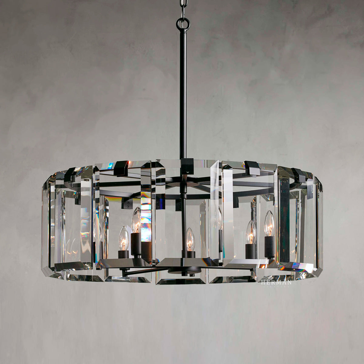 The Amaya Collection pairs clear crystal with iron in either a sleek black finish or warm brass plating, creating a deliberate contrast of clarity and structure. Each piece catches and refracts light to produce a refined, prismatic glow—bright enough to anchor a room, yet balanced for everyday living. The clean metal lines ground the design while the crystal elements bring lift and sparkle, resulting in lighting that feels both modern and timeless. Perfect for living and dining spaces, open-plan rooms, and welcoming entries, Amaya turns illumination into a statement of quiet sophistication.