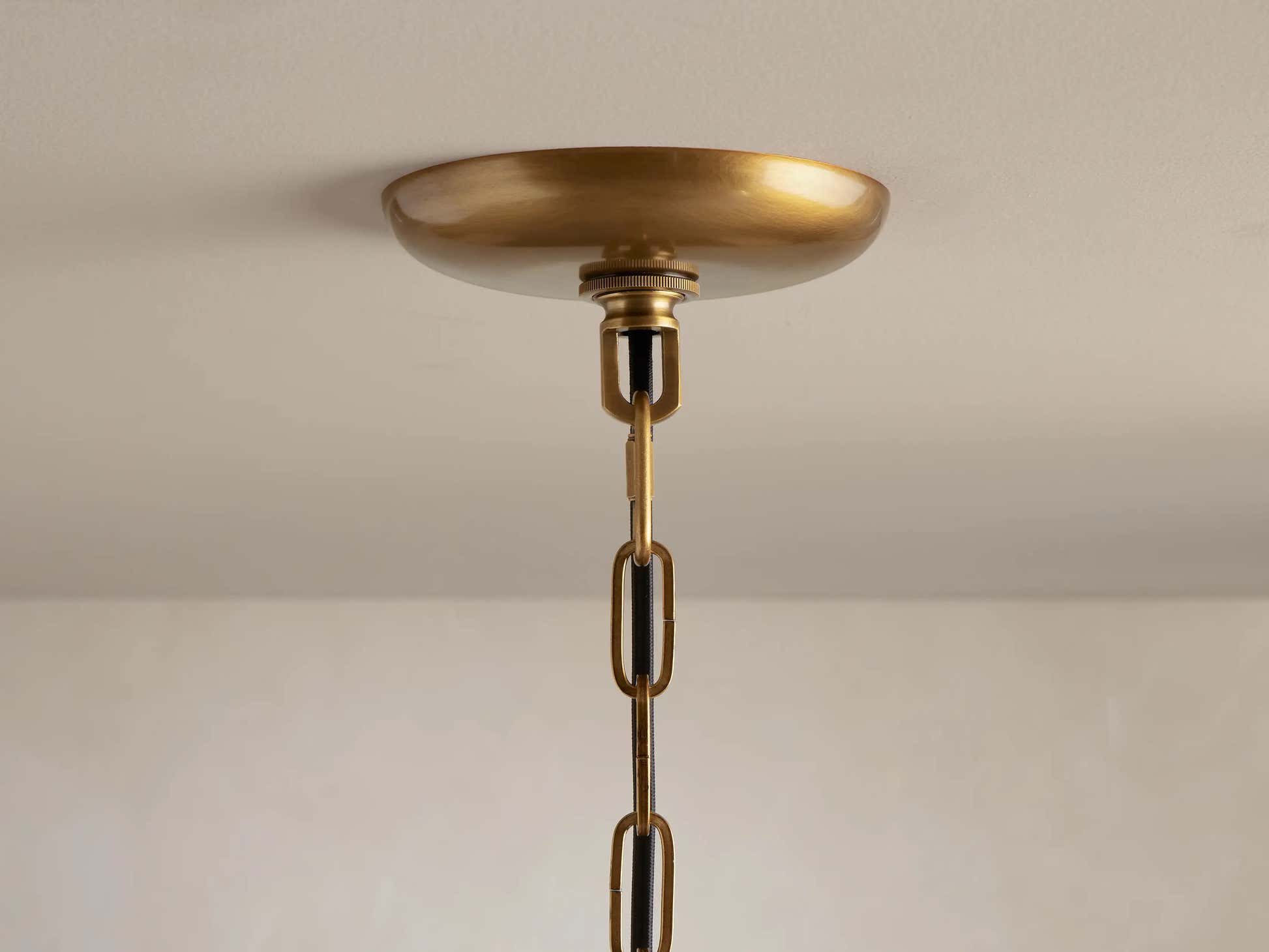 Inspired by the famous Italian decorative glass, the Amor chandelier artfully diffuses light through curved textured glass pieces. It features an electroplated brass finish to elegantly illuminate any room.