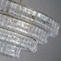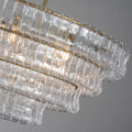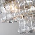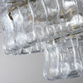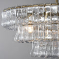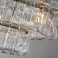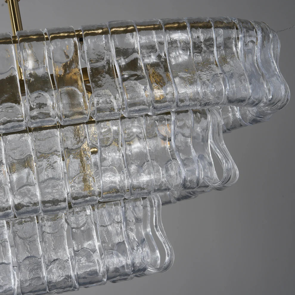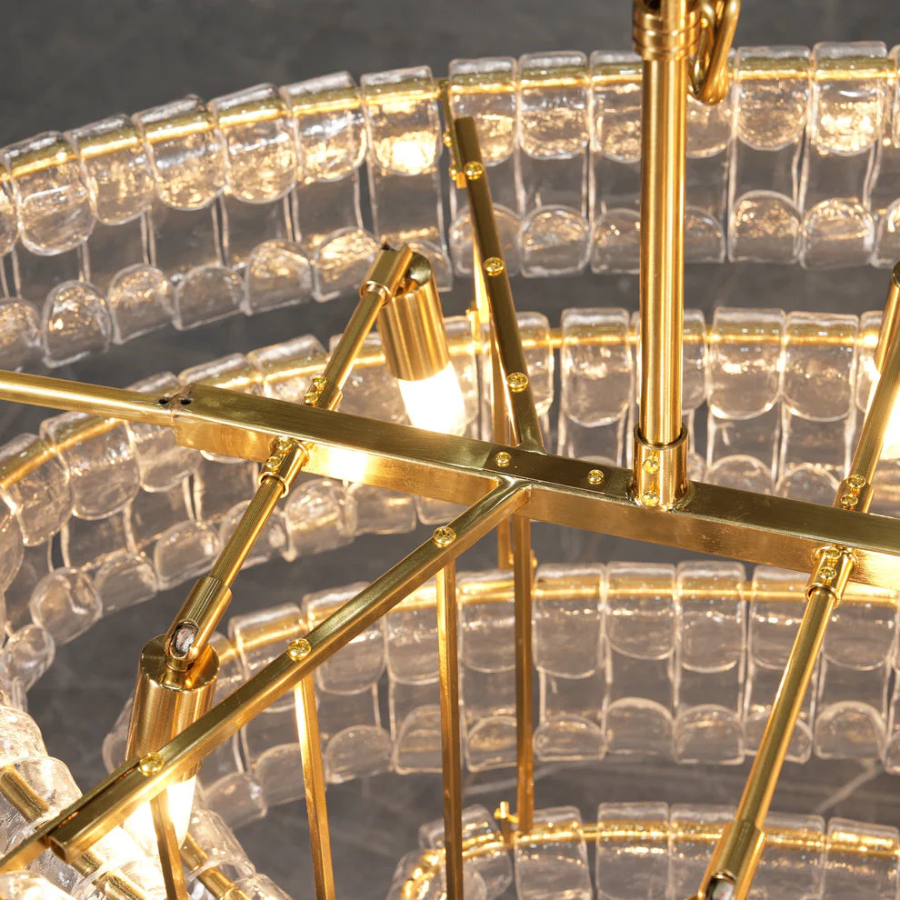 Inspired by the famous Italian decorative glass, the Amor chandelier artfully diffuses light through curved textured glass pieces. It features an electroplated brass finish to elegantly illuminate any room.
