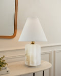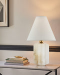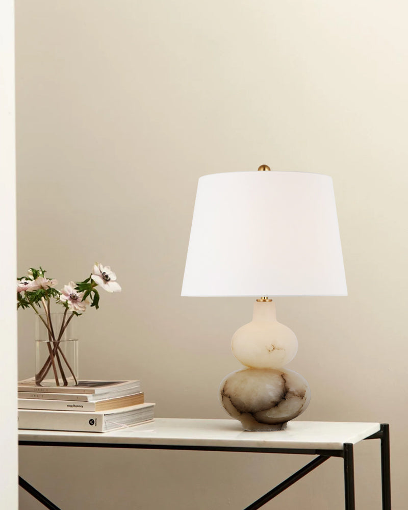 Art Design Arteriors Everly Alabaster Table Lamp Wide 15" with White Linen Fabric Lampshade