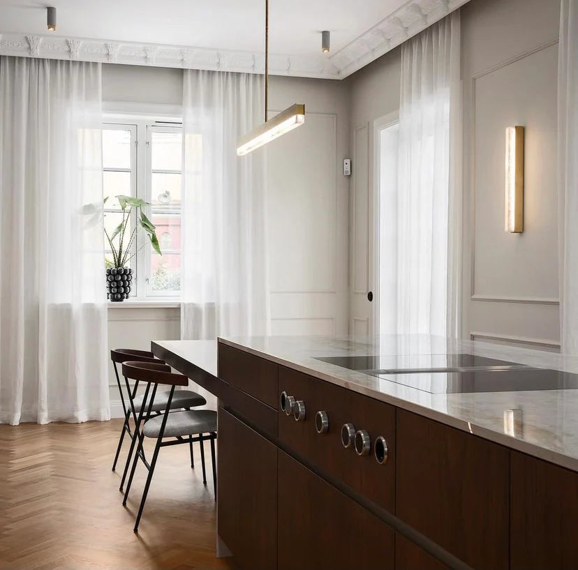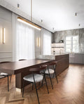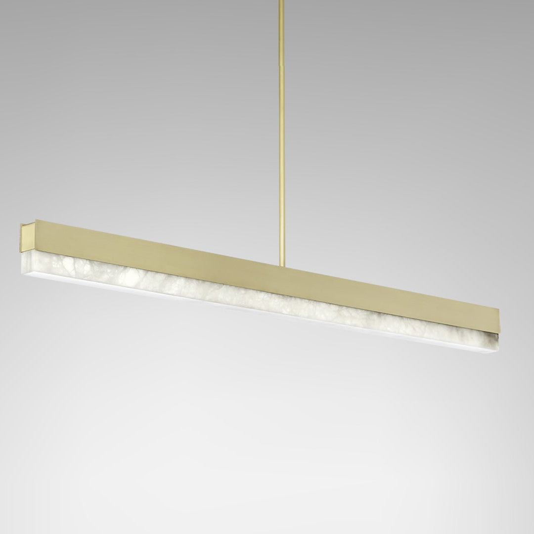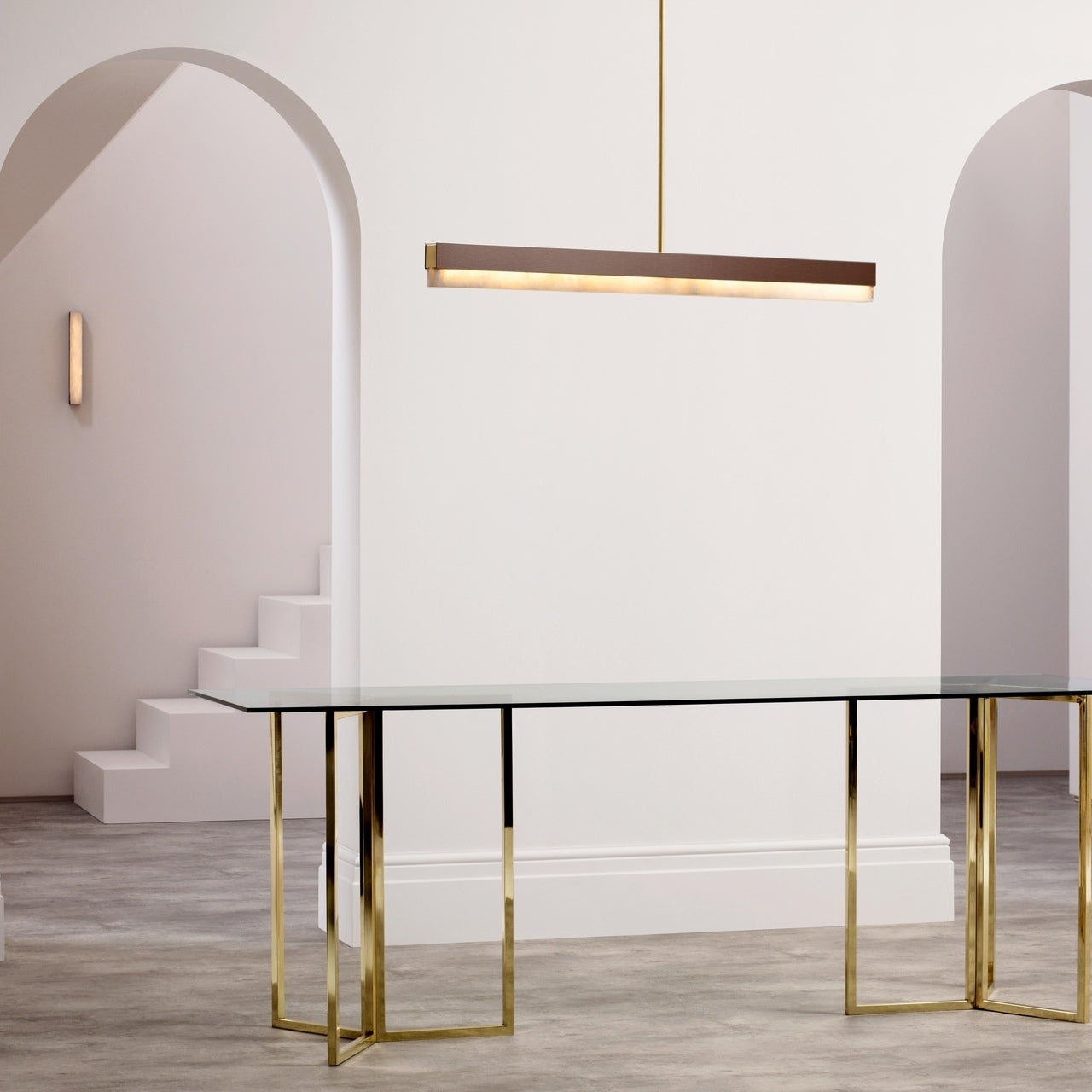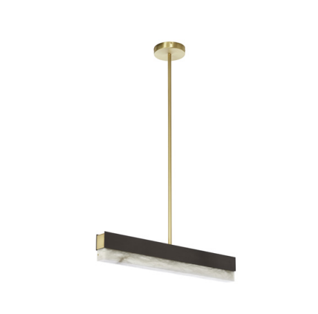 An architectural beam of light fused with premium materials such as bronze, satin brass and honed alabaster creates an elegant pendant which can be used singularly or as a composition creating endless possibilities to personalise a space.