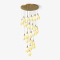 The Astralis Bloom Chandelier showcases a breathtaking fusion of electroplated iron and ceramic craftsmanship. Designed to resemble an ethereal cascade of glowing petals, this chandelier captures the essence of celestial beauty. Each ceramic petal, delicately suspended, radiates a soft and warm glow, creating a serene atmosphere. With its tiered structure and sleek golden accents, this chandelier brings a sophisticated and organic touch to your home, perfect for modern spaces seeking both elegance and natural charm.