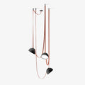 Accommodating multiple lamps and operating with a simple technology for unparalleled ease of installation and connection. The leather 'fit' can be adjusted from tense to relaxed, as well as the click-and-connect functionality, by fitting it into a buckle that is attached to each lamp. It can be placed in ceilings, or even be left loose on the floor, seeing as the leather is aesthetically pleasing.