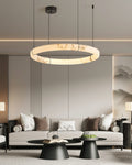 Black Metal Modern Round Ring Alabaster Pendant Light, Width 3.15"