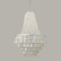Introduce a touch of elegance into your living spaces with our Boho Shell Tiered Chandelier. Handcrafted from natural Capiz shells, this chandelier combines traditional pear shape with beautiful textures for a soft and diffused light. Perfect for any room, from the stairs to the dining table or a high ceiling living room.