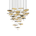 Crafted with metal shards delicately arranged in a moon-shaped design, the Brass Aviary Constellation Chandelier is a stunning addition to any home. Its dome-shaped canopy is intentionally fractured to create an eye-catching feature on your ceiling. This vibrant steel-clad artwork casts light in all directions, making it the perfect accent of celestial beauty and radiance.