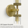 Celebrate contrast with a designer brass fixture etched in a precise diamond knurl. The tactile pattern lends a subtle industrial note, while the solid brass body elevates the piece with lasting elegance and warmth. Paired with clear glass, the sconce delivers crisp, ambient illumination—refined, decorative, and effortlessly modern.