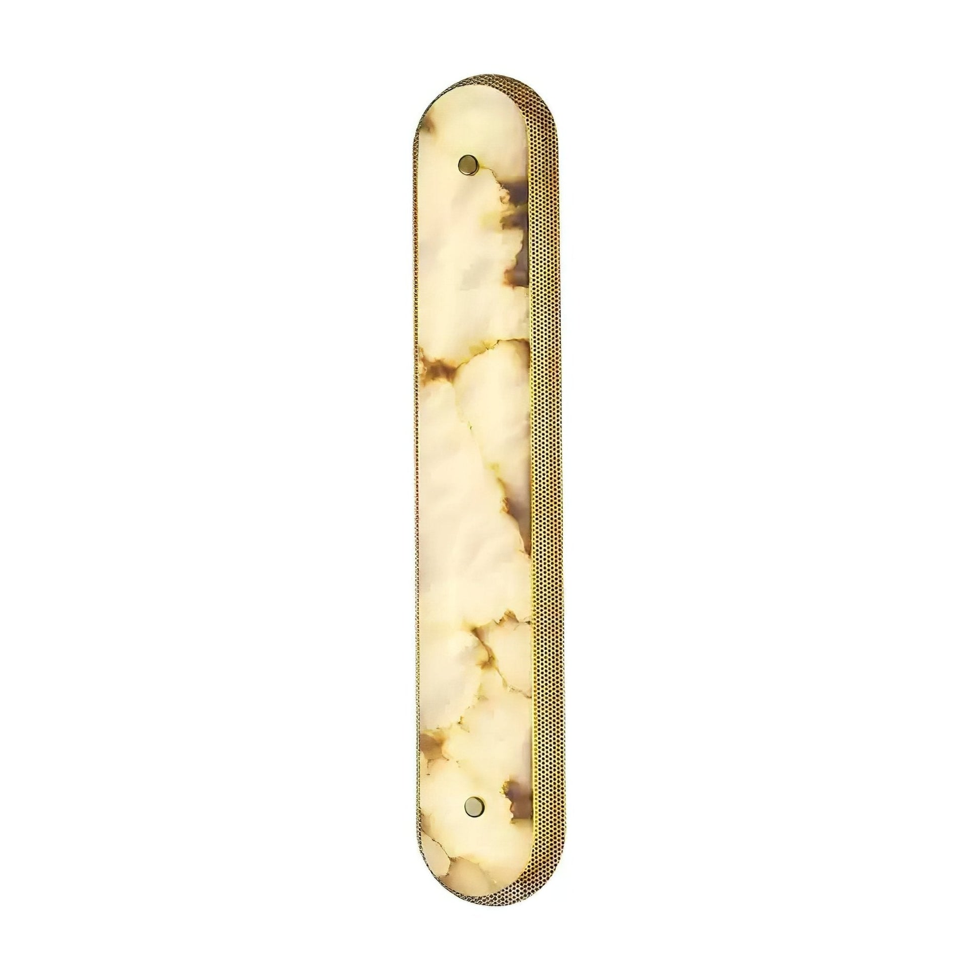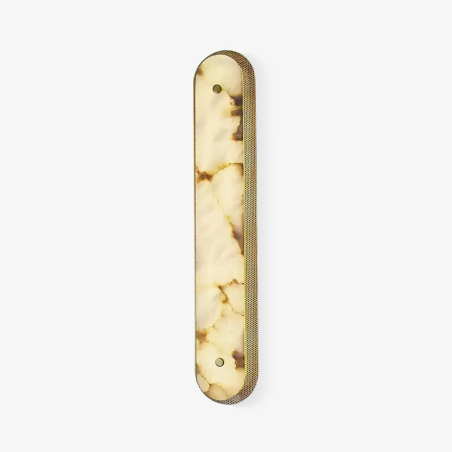The Hermanlamps Calyxon Wall Sconce is a bold interplay of organic beauty and architectural precision. Alabaster core that radiates warmth through a sleek, perforated brass frame. Its elongated pill form, paired with the dramatic veining of the surface, makes it a striking focal point in modern interiors. Perfect for high-end corridors, galleries, or intimate lounge settings, the Calyxon transforms any wall into a canvas of golden ambiance and quiet sophistication.