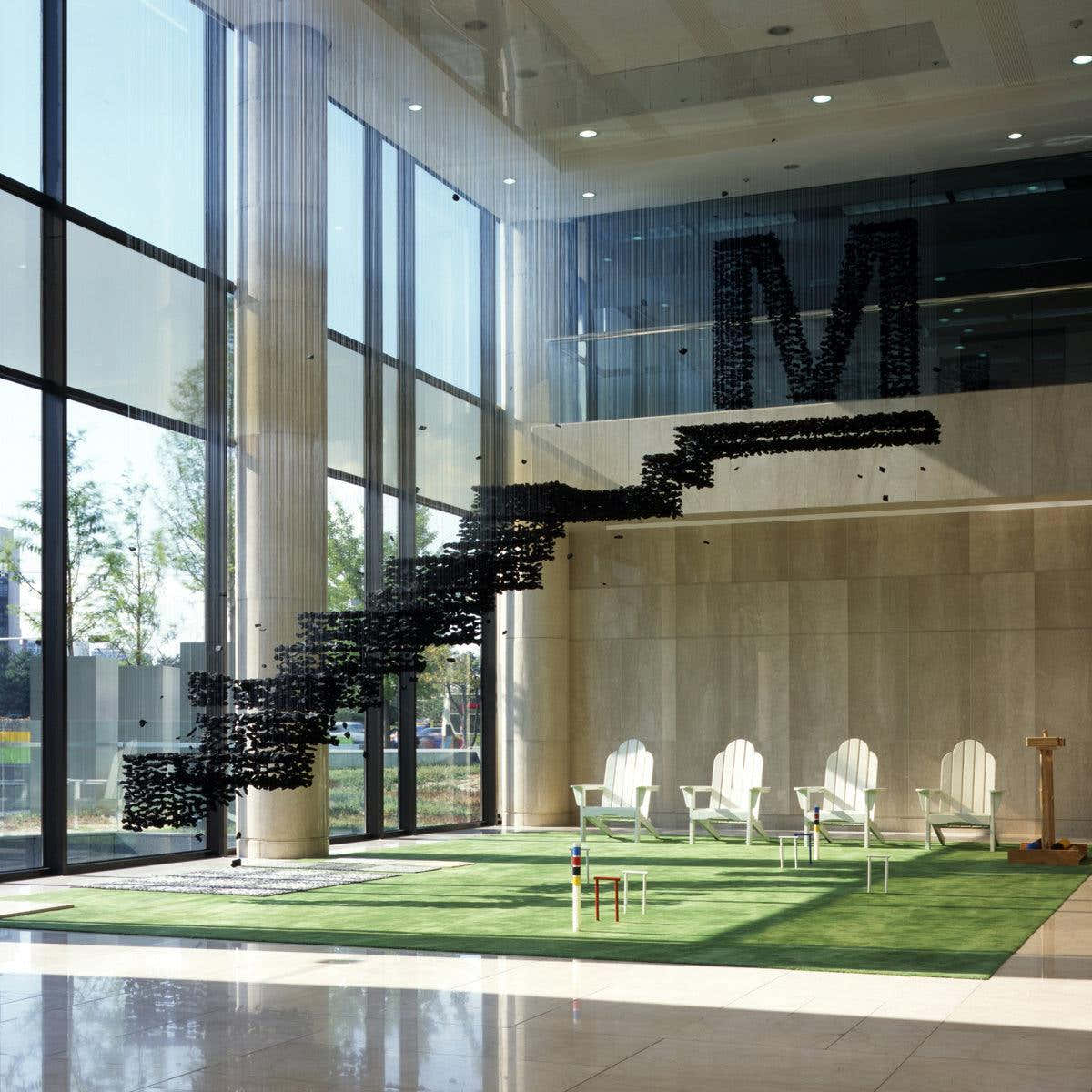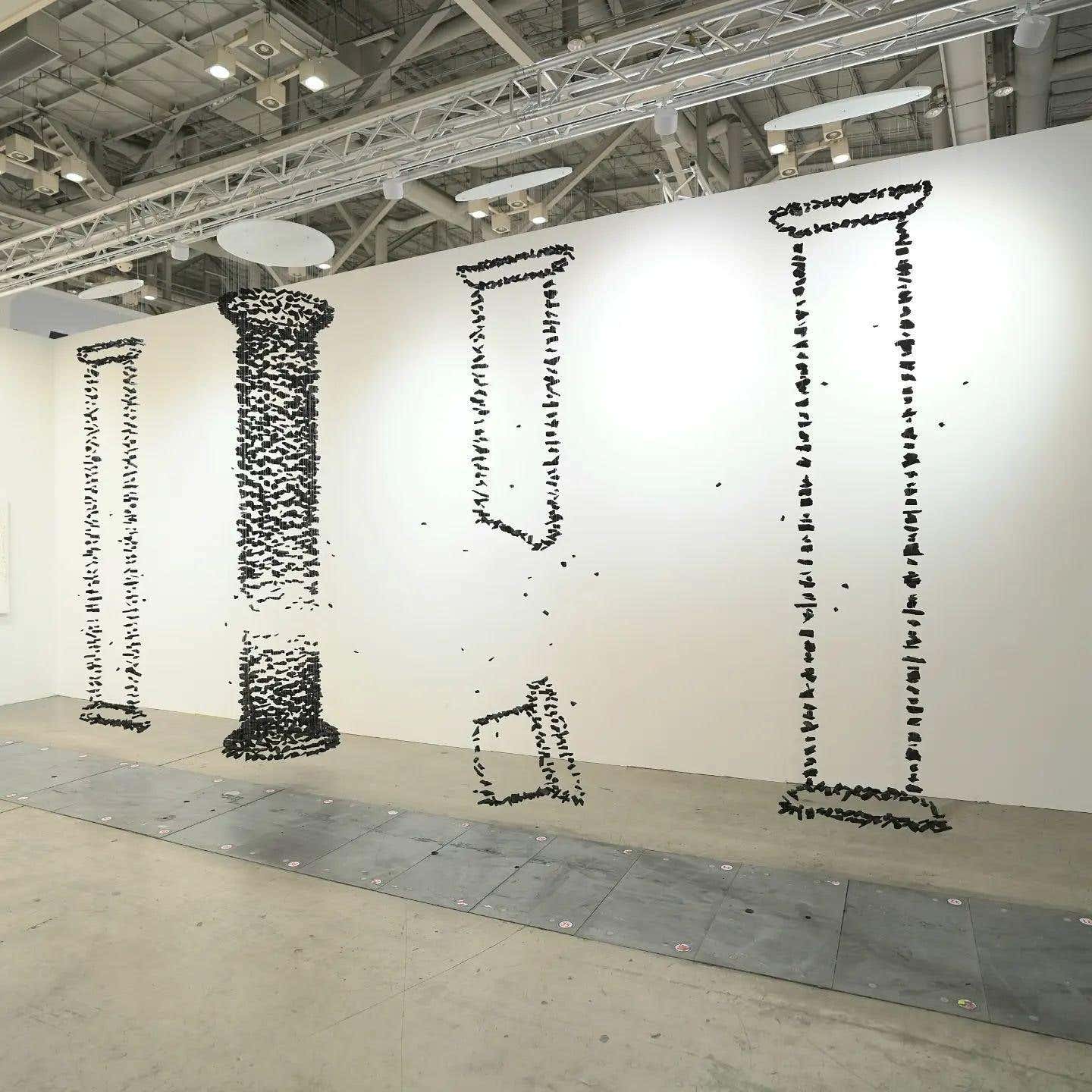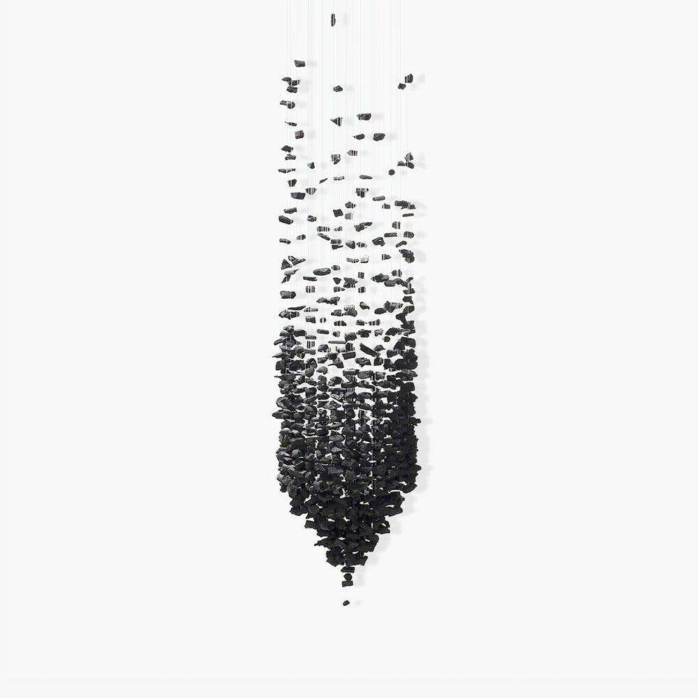 Beginning with one piece of charcoal, a line is formed and an area is filled, expressing the idea that everything in the universe interconnects. The use of charcoal, which simultaneously creates and destroys, implies that all of existence is condensed in a single point. The meaning is plain and unmistakable.