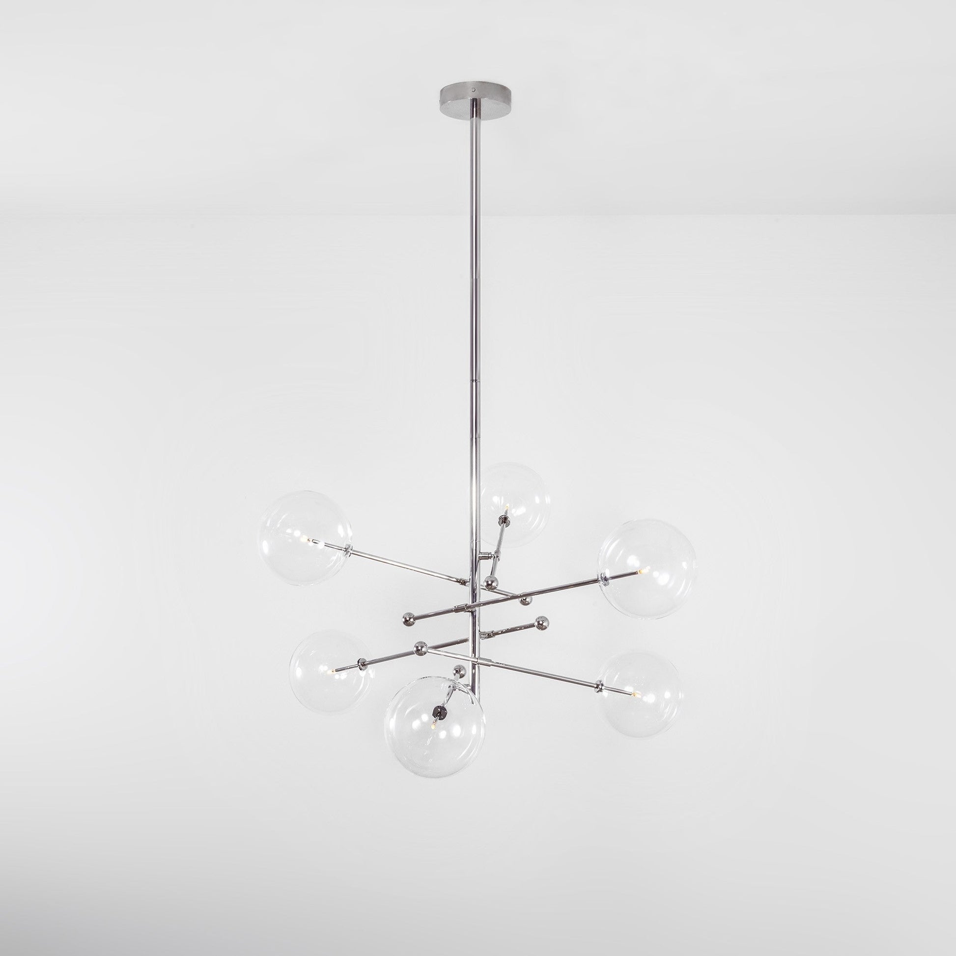 The RD15 Chandelier is a modern ceiling light made of solid brass with mouth blown glass globes. This is the perfect contemporary light fitting to make a statement in your home or commercial property. The workmanship and quality is of the highest standard. This comes in three different finishes and can be altered to your required height.