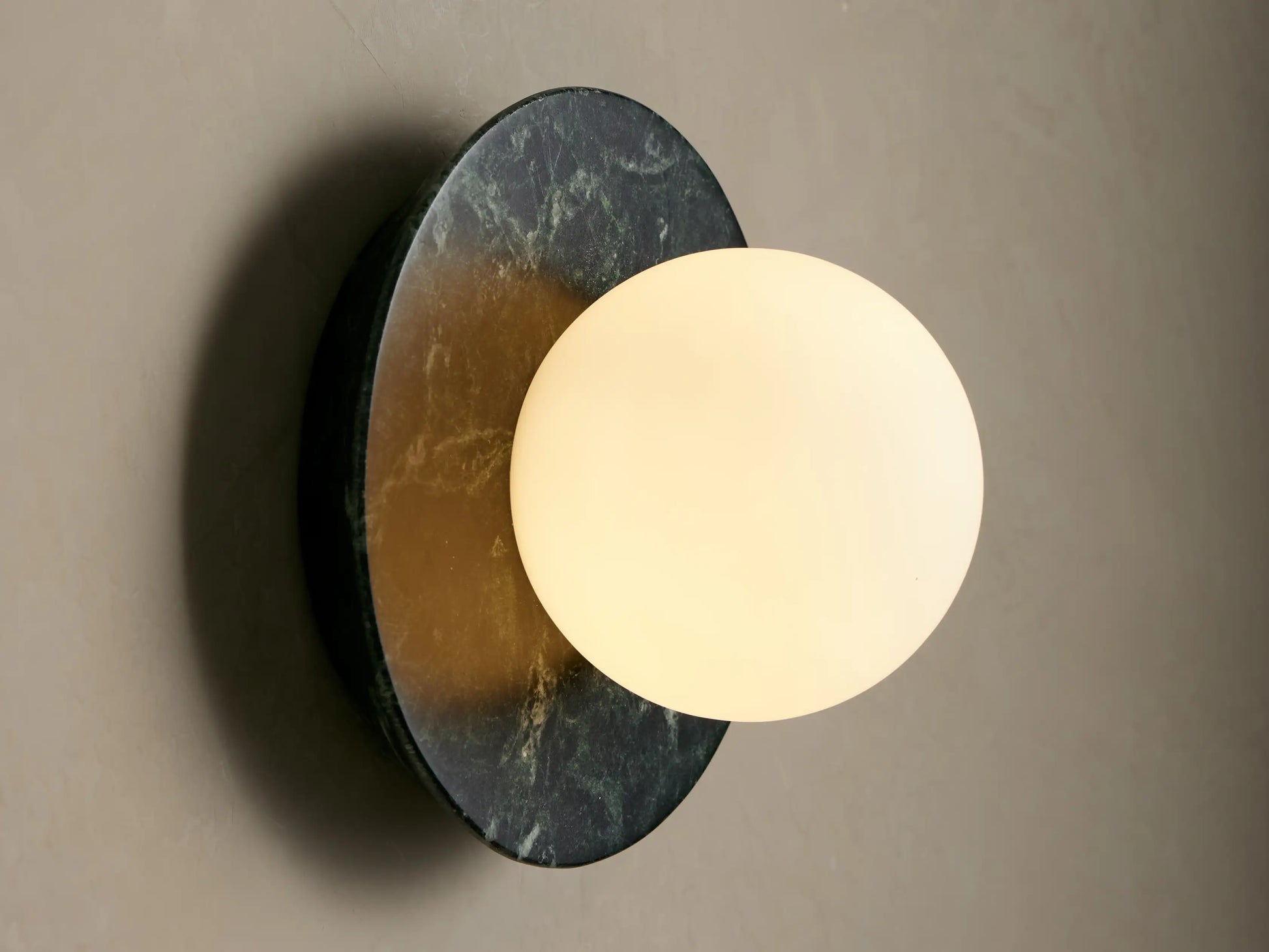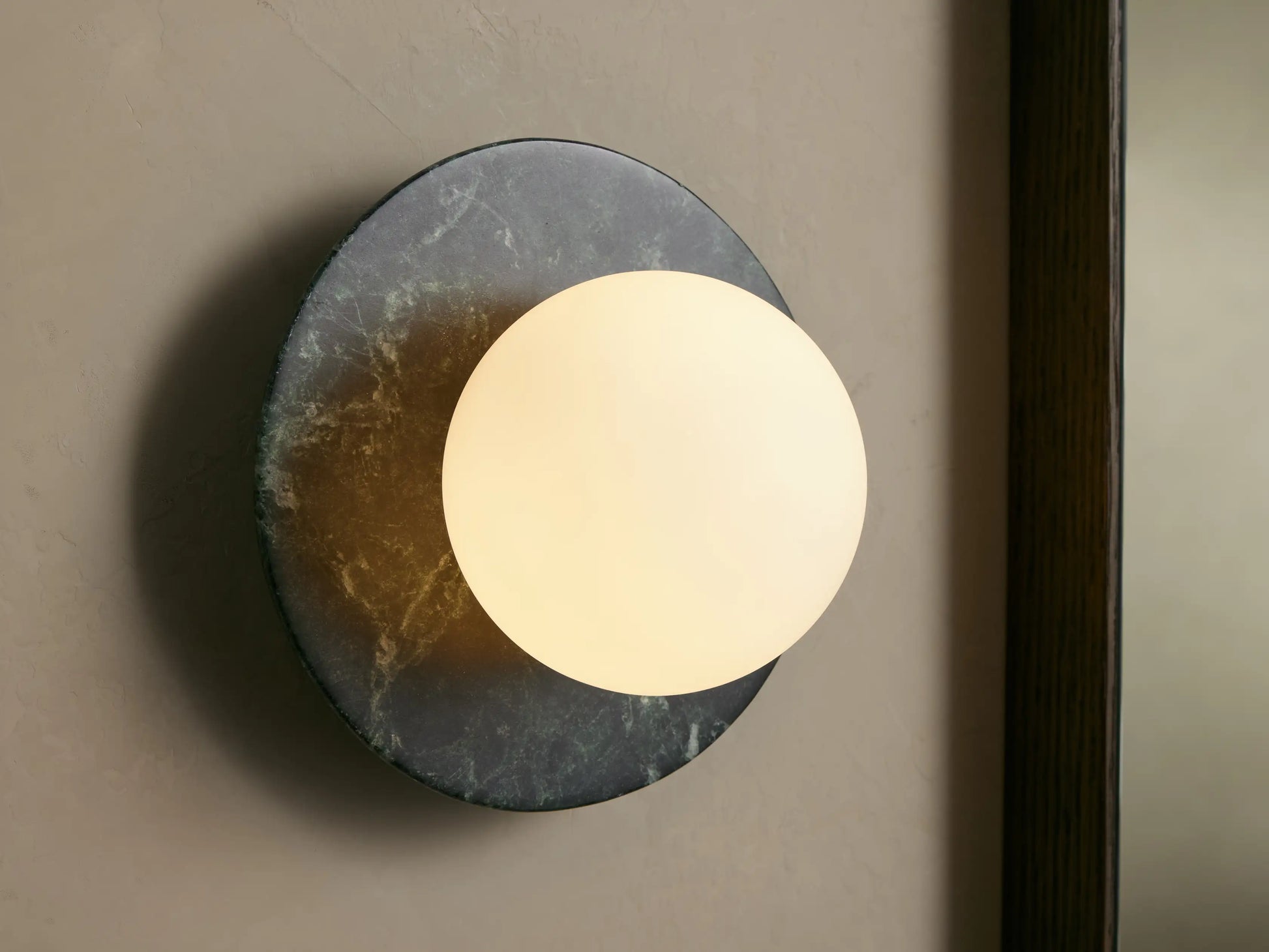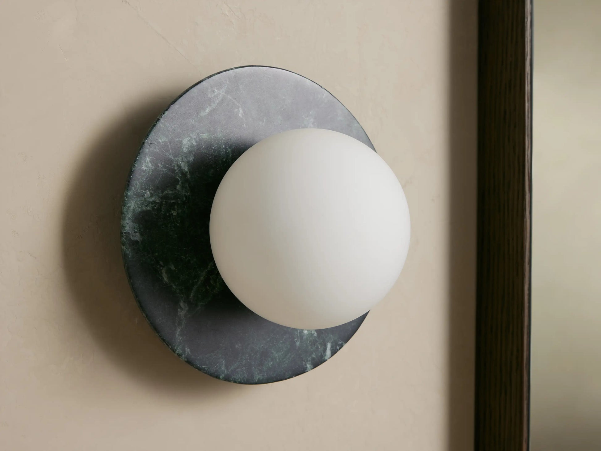 Bring the grounding beauty of nature into your home with the Corinna Wall Sconce. This fixture features a luminous milk glass globe that floats effortlessly against a substantial, round backplate crafted from genuine marble. Whether you choose the warm hues of the cream stone, the dramatic contrast of the black, or the serenity of the green, the natural veining ensures that every single sconce is a unique work of art. It’s the perfect way to add a touch of organic luxury to your bedside, hallway, or powder room.