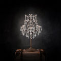 Capture the age-old romance of candlelight with this beautiful candle holder, based on the same design as our Crystal table lamp but using candles (not included) in place of bulbs. The design takes its inspiration from Georgian chandeliers and features precision cut glass crystals and bobeche dishes, contrasted with an aged metal frame in our proprietary Antique Rust finish.