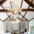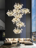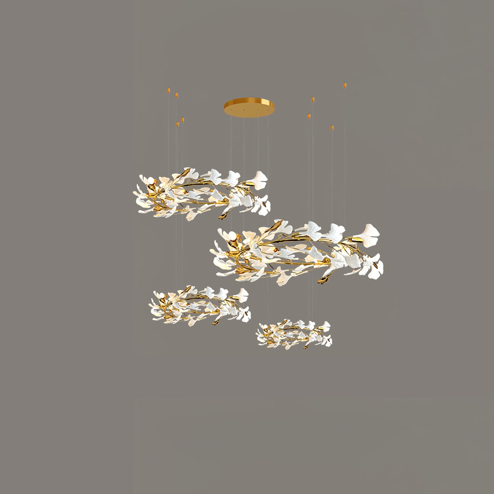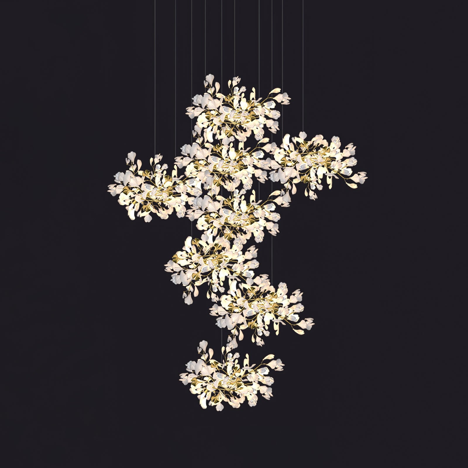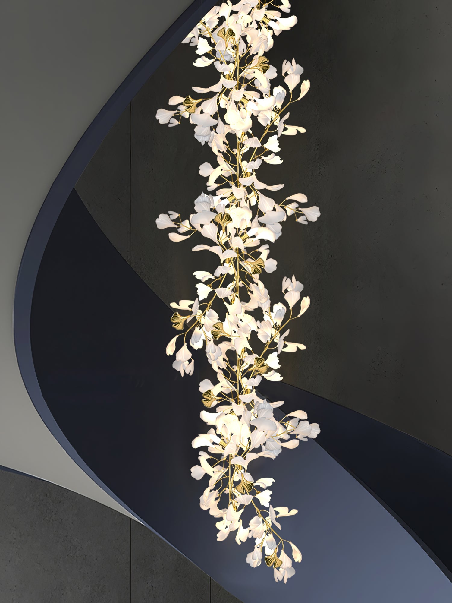 Featuring a luxurious overall design and advanced manufacturing technology, the Customize Gingko Chandelier showcases its opulence through exquisite ceramic petals adorning the metal lamp body. Immerse yourself in the perfect blend of lighting and nature with this bespoke installation, handcrafted with porcelain leaves. Experience the harmonious interplay of light and ceramic, creating a welcoming ambiance that promotes well-being. Beyond its functional purpose, this light sculpture defines its own striking appearance, eliciting awe as a mesmerizing piece of artwork. Like a living plant, it exudes a natural, dynamic energy that brings tranquility and vitality to any space. Working in tandem with the architectural and design vision, this installation is a symbol of harmony between man and nature.