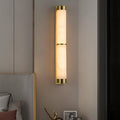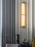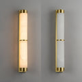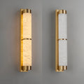 The Cylindra Alabaster Brass Wall Light is a testament to the elegance of simplicity and the beauty of natural materials. Crafted from the finest brass and adorned with a cylindrical alabaster shade, this wall light exudes a warm, ambient glow that accentuates the unique veining and creamy texture of the alabaster.