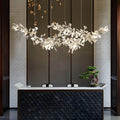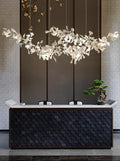 This Double Layer Combination Gingko Chandelier is perfect for adding a touch of luxury to any living space. Its metal lamp body is covered with exquisite ceramic petals, creating a sophisticated look that blends modern lighting design with natural elements. Experience the perfect combination of luxury and nature.