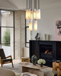 Elegant Lighting Linear Nature Stone 2" Wide Alabaster Chandelier