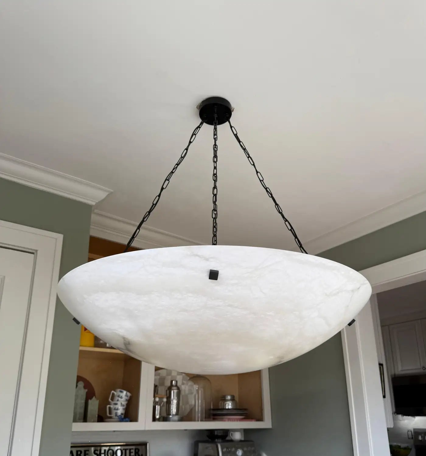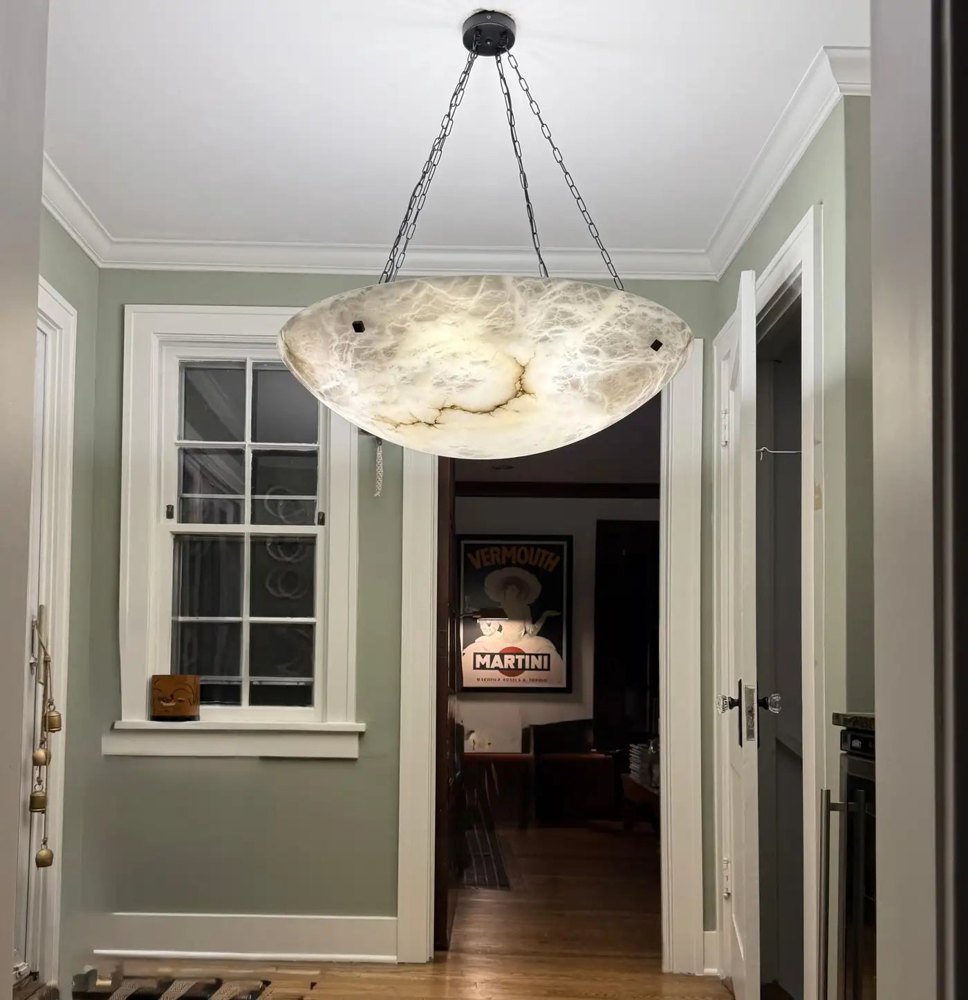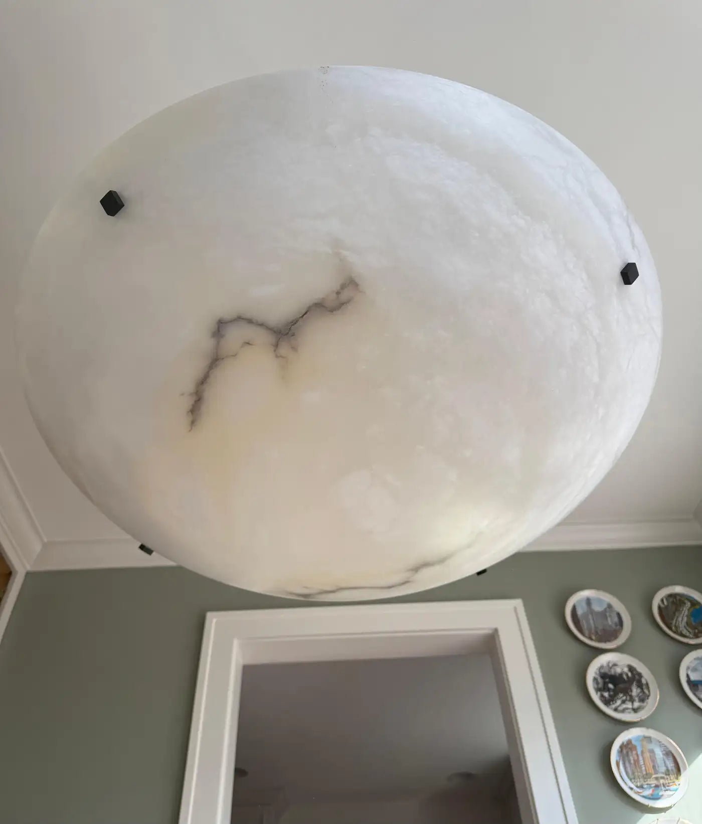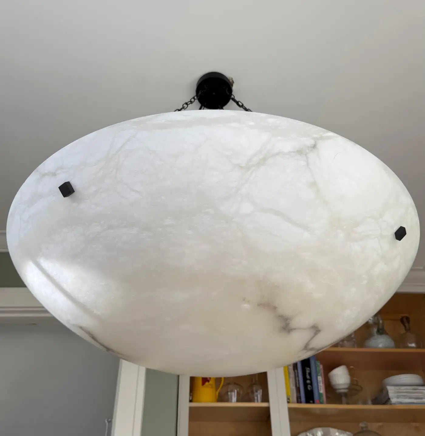 Enormous 36 Ø Flush Mount / Pendant with Stunning Full Moon-Like Alabaster Shade