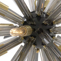Enjoy the retro charm of the Equalizer S Chandelier, a contemporary interpretation of the classic Sputnik chandelier. The armature with brass and black finish features a starburst design of contrasting smoke glass rods. With 9 glistening light fittings it creates a commanding installation from above.