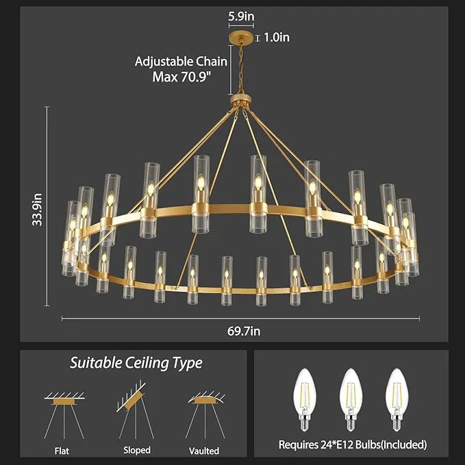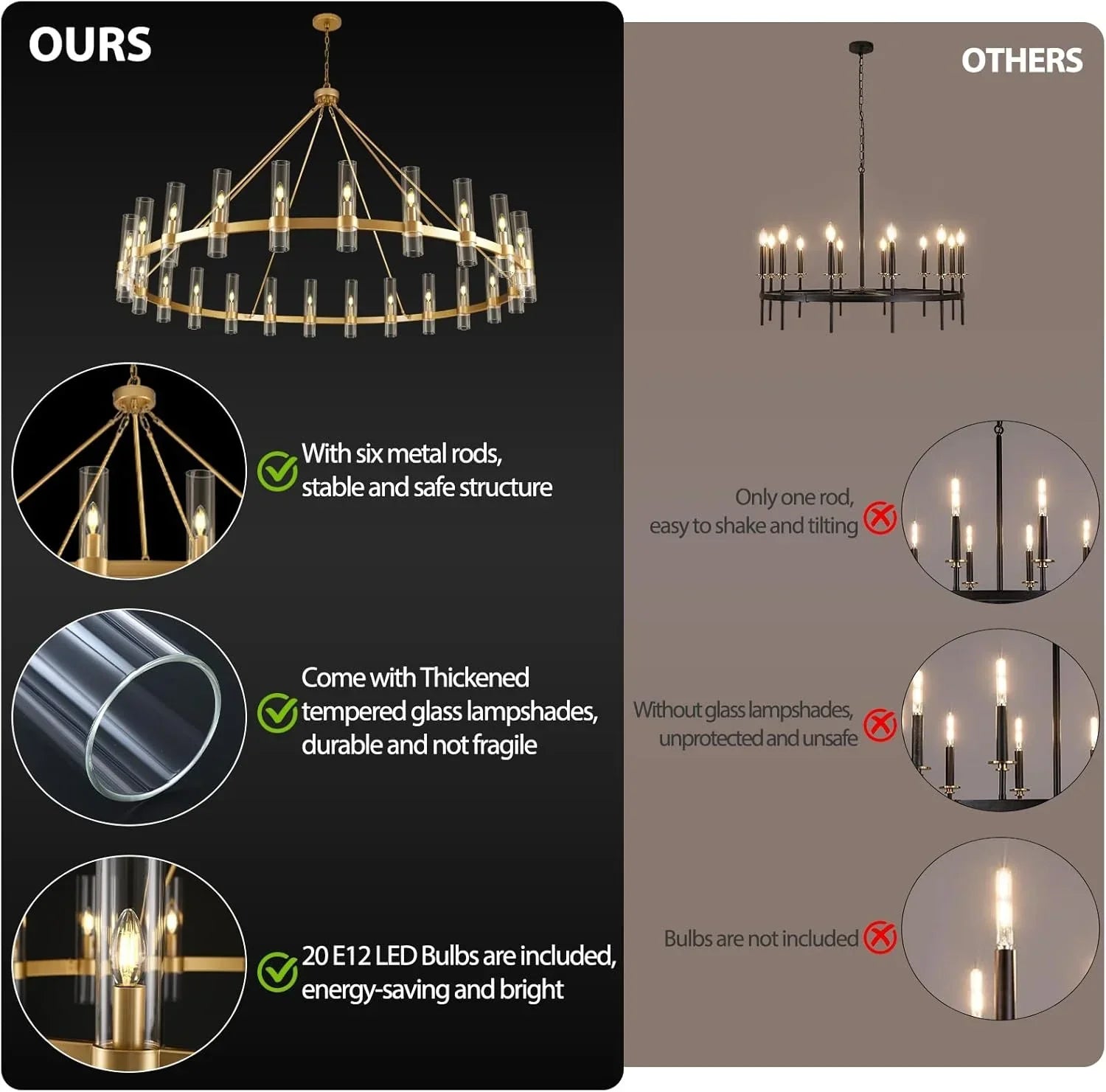 Aetheris Round Chandelier 60" 70" is made of clear glass to maximize light and brightness. Not only do they illuminate the darkness better, but they also decorate the house nicely. Whether it's modern decor or vintage farmhouse style, these chandeliers will fit in perfectly.