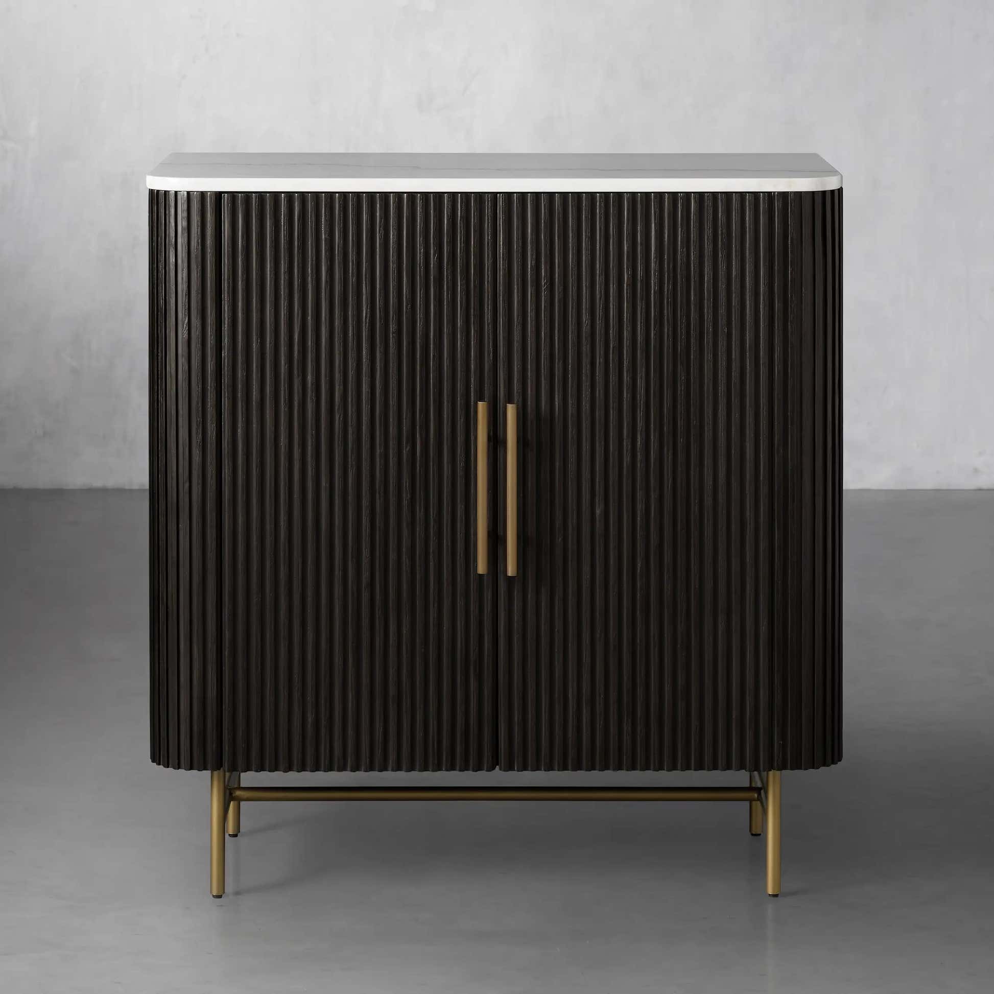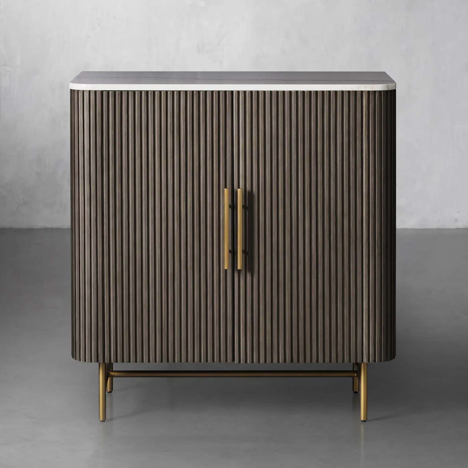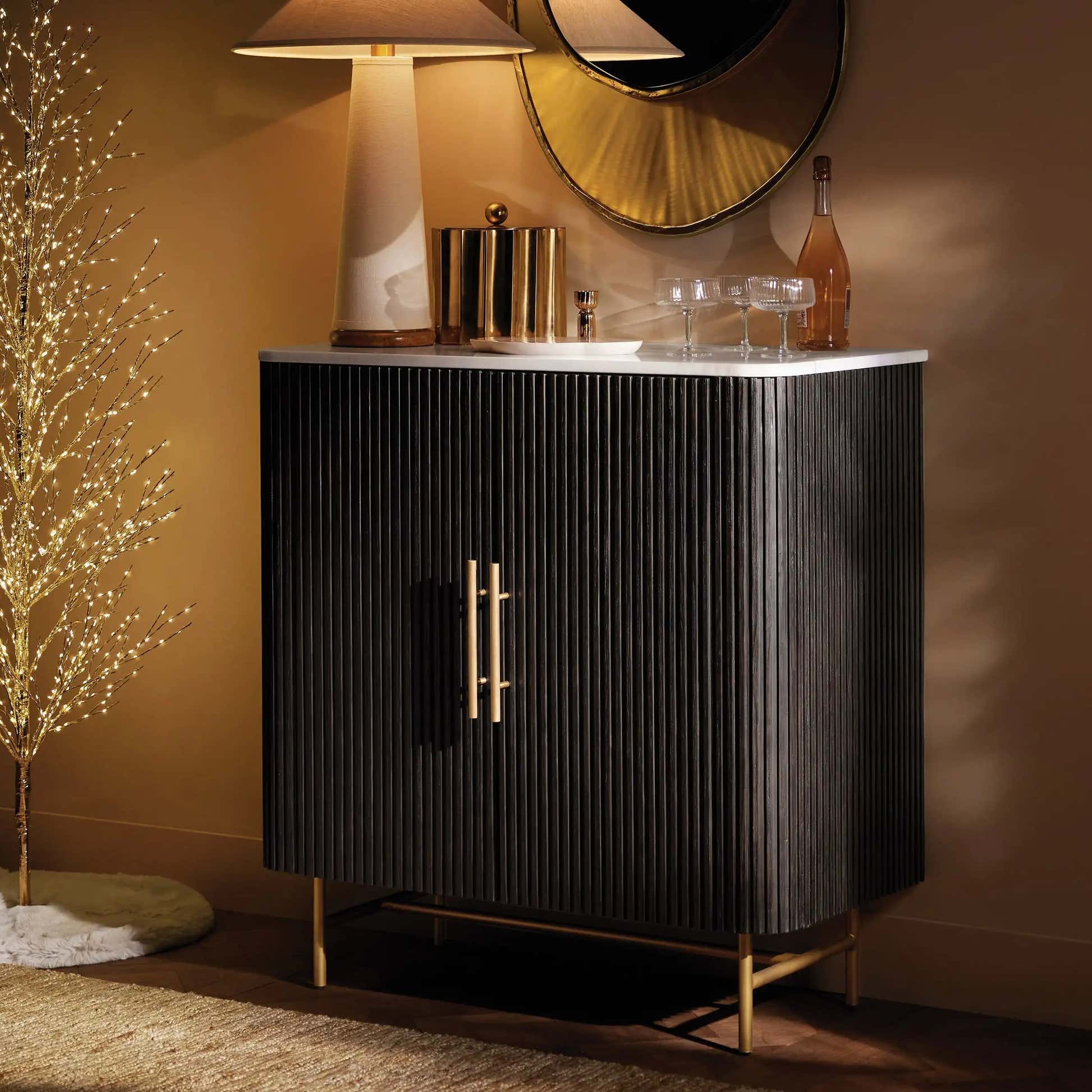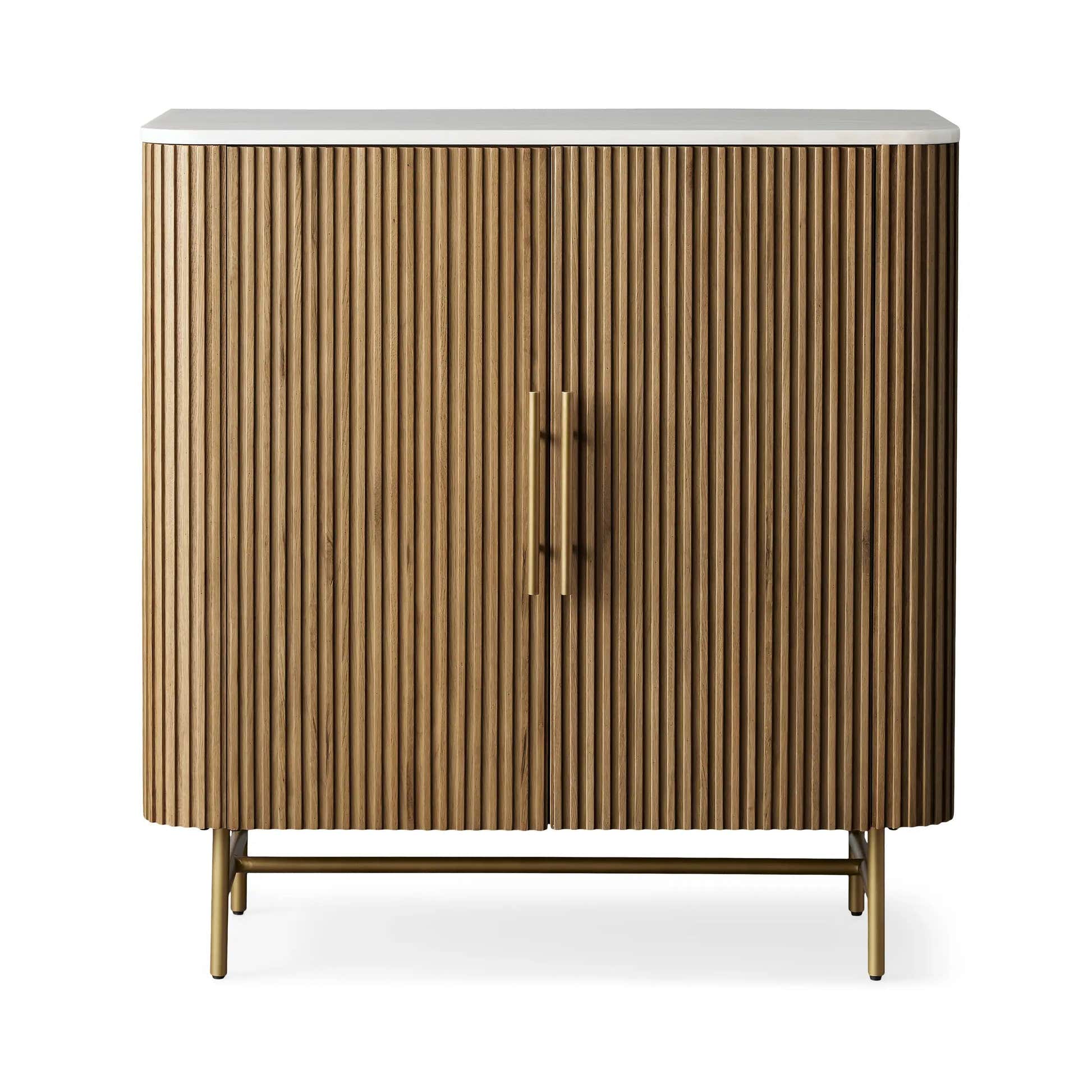 The Arden Bar Cabinet combines refined craftsmanship with thoughtful functionality, making it a sculptural focal point for entertaining spaces. Built from hand-finished Finnish pine or white oak, the cabinet features the collection’s signature reeded oak detailing and is topped with your choice of Carrara, White Marble, or Bluestone for a sophisticated contrast. Behind the elegant exterior, the interior offers dedicated storage for wine bottles, glassware, and bar tools, making it as practical as it is beautiful. Whether styled in a dining room, lounge, or open-plan living space, the Arden Bar Cabinet elevates the art of hosting with timeless materiality and everyday ease.