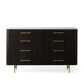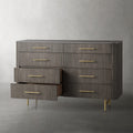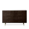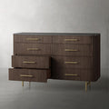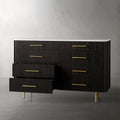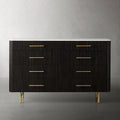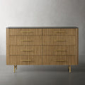 The Arden Eight-Drawer Dresser offers generous storage and timeless style, making it a standout anchor piece for the bedroom. Crafted from hand-finished Finnish pine or white oak, the dresser features the collection’s signature reeded oak detailing and is topped with your choice of Carrara, White Marble, or Bluestone for a refined natural contrast. Eight spacious drawers provide organized storage for clothing and essentials, while brass-finished zinc-alloy hardware and a plinth base lend a grounded, architectural presence. Thoughtfully designed and impeccably crafted, the Arden Dresser elevates any bedroom with its balance of utility and elegance.