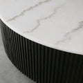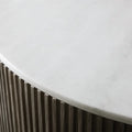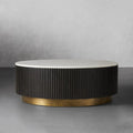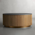 The Arden Round Coffee Table showcases a refined mixed-material design that brings timeless elegance to any space. Hand-finished pine from Finland forms the sculptural base, available in rich tones of Mocha, Ebony, Honey, or Liath Smoke. The tabletop is offered in your choice of premium stone finishes: Carrara, Bluestone, or White Marble. Accented with subtle reeded oak detailing and grounded by a zinc-alloy plinth base featuring a light brass finish, this piece strikes the perfect balance between organic warmth and modern sophistication. Effortlessly versatile, the Arden table complements both classic and contemporary interiors.