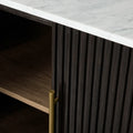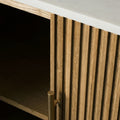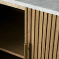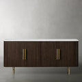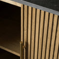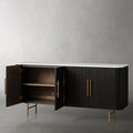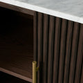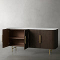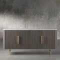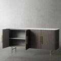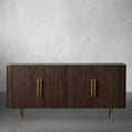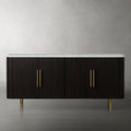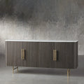 The Arden Sideboard embodies the same refined mixed-material design found throughout the Arden collection, offering functional elegance with a sculptural presence. Built from hand-finished pine sourced from Finland, the case is available in rich tones of Mocha, Ebony, Honey, or Liath Smoke. A stone top—offered in Carrara, Bluestone, or White Marble—adds luxurious contrast, while reeded oak detailing and a zinc-alloy plinth base in a light brass finish provide a sophisticated foundation. With its blend of organic texture and architectural form, the Arden Sideboard makes a statement in dining rooms, living spaces, or entryways alike.
