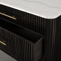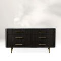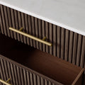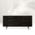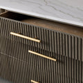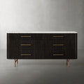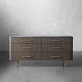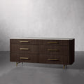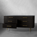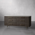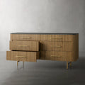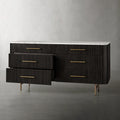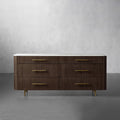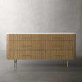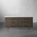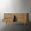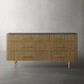 The Arden 6 Drawer Dresser brings the signature mixed-material aesthetic of the Arden Bedroom Collection into a beautifully functional storage piece. Crafted from hand-finished Finnish pine or white oak, the dresser features elegant reeded oak detailing and is topped with your choice of Carrara, White Marble, or Bluestone for a refined, organic contrast. Six spacious drawers offer generous storage for clothing and essentials, all supported by a sturdy frame grounded on a brass-finished plinth base. With its sculptural lines and timeless materiality, the Arden Dresser adds both warmth and sophistication to any bedroom setting.
