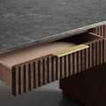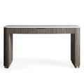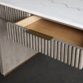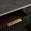 - The center drawer is fitted with zinc-alloy finger pull hardware in a light brass finish, offering a refined accent.