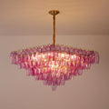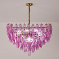 Bold, vibrant, and unapologetically glamorous, the Hermanlamps Fuchsia Prism Empire Chandelier is designed to make a statement. Featuring layers of faceted fuchsia-toned glass prisms cascading in an elegant inverted pyramid silhouette, this chandelier transforms any room into a luxurious and expressive space. The rich color creates a playful yet refined ambiance, while the gold-finished frame and fabric-wrapped cord add warmth and sophistication. Ideal for modern foyers, dining rooms, or stylish lounges, this chandelier is part of the Hermanlamps Prism Series—where color meets craftsmanship.