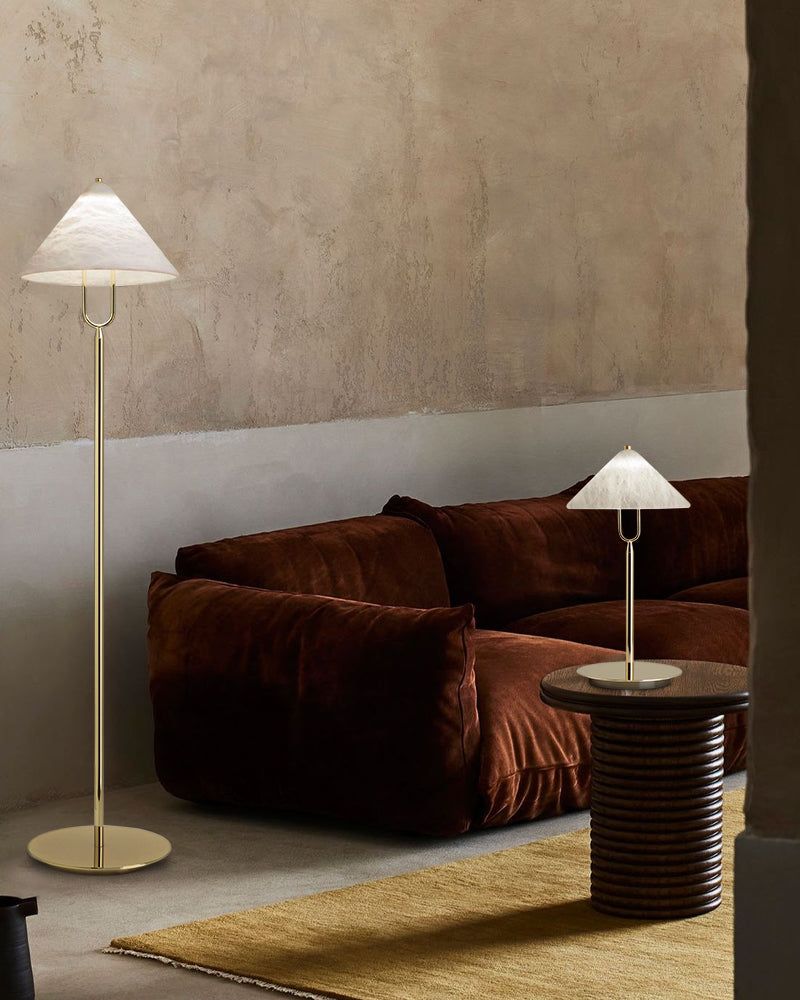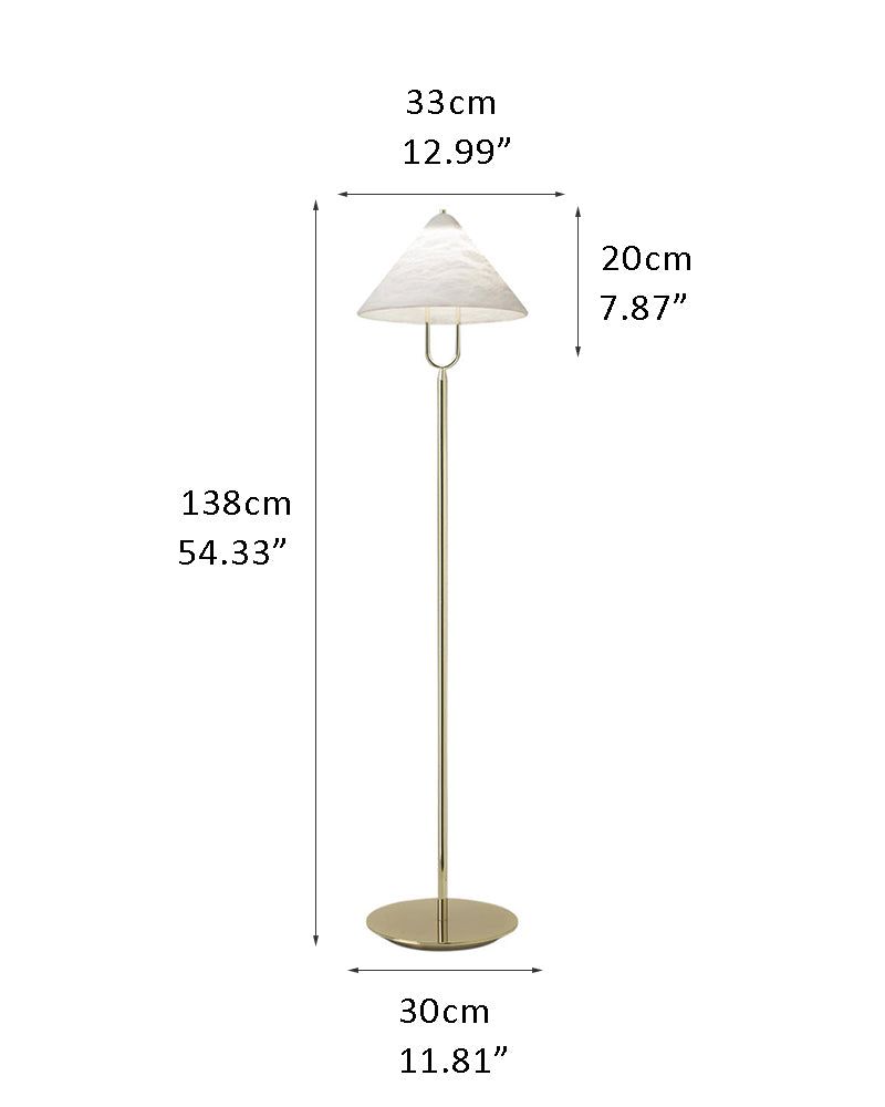 - Sleek Cone Shade with Handcrafted natural alabaster stone diffuses soft in LED glow.