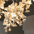 This ceramic ginkgo tree petal chandelier shows its luxurious style in overall design, material, and manufacturing technology. The metal lamp body is covered with exquisite ceramic petals, which reflect the perfect combination of lighting design and natural plants.