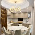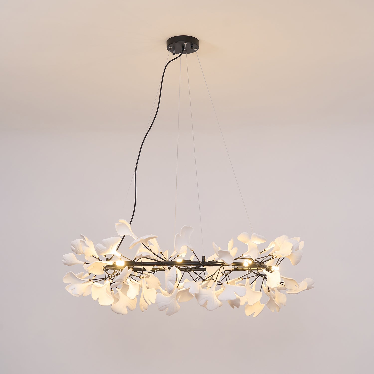 This ceramic ginkgo tree petal chandelier shows its luxurious style in overall design, material, and manufacturing technology. The metal lamp body is covered with exquisite ceramic petals, which reflects the perfect combination of lighting design and natural plants.